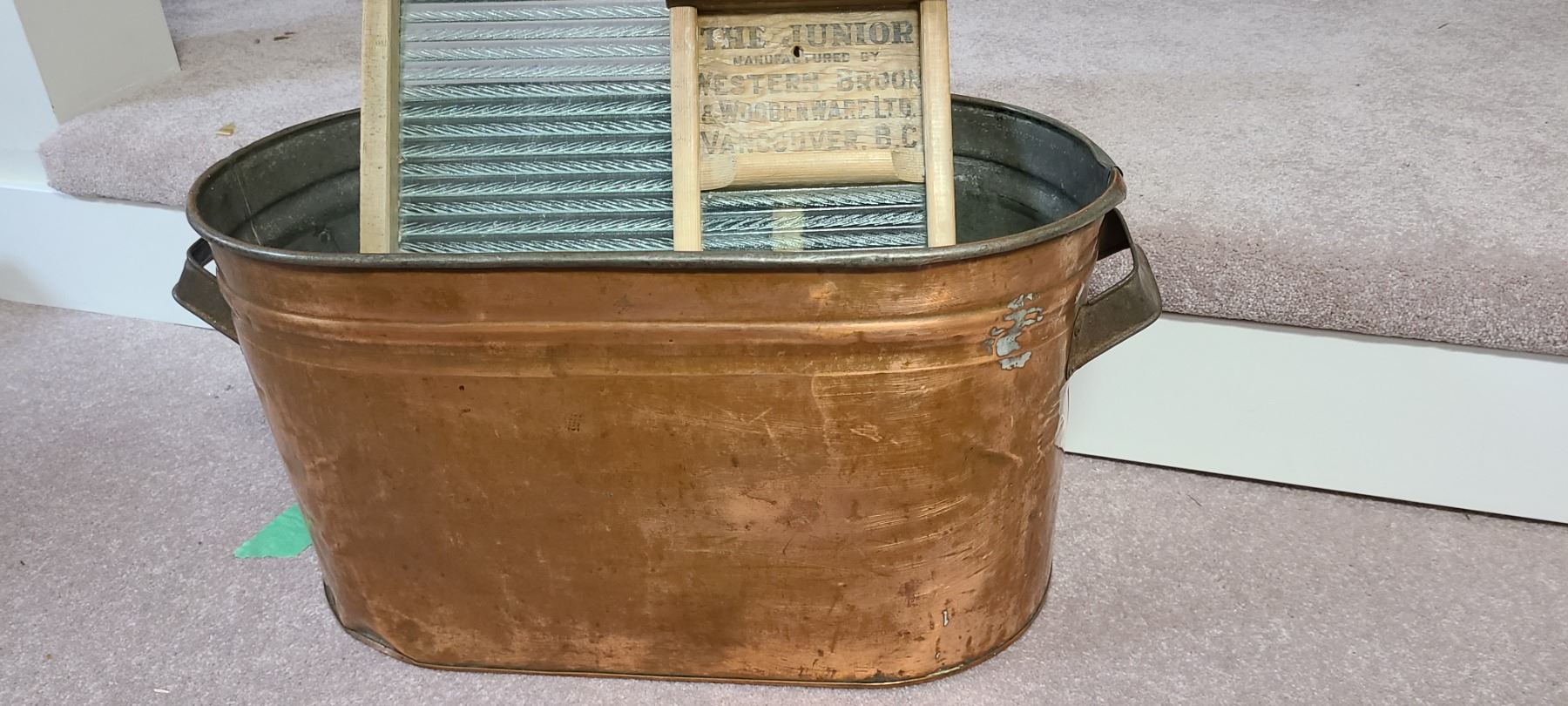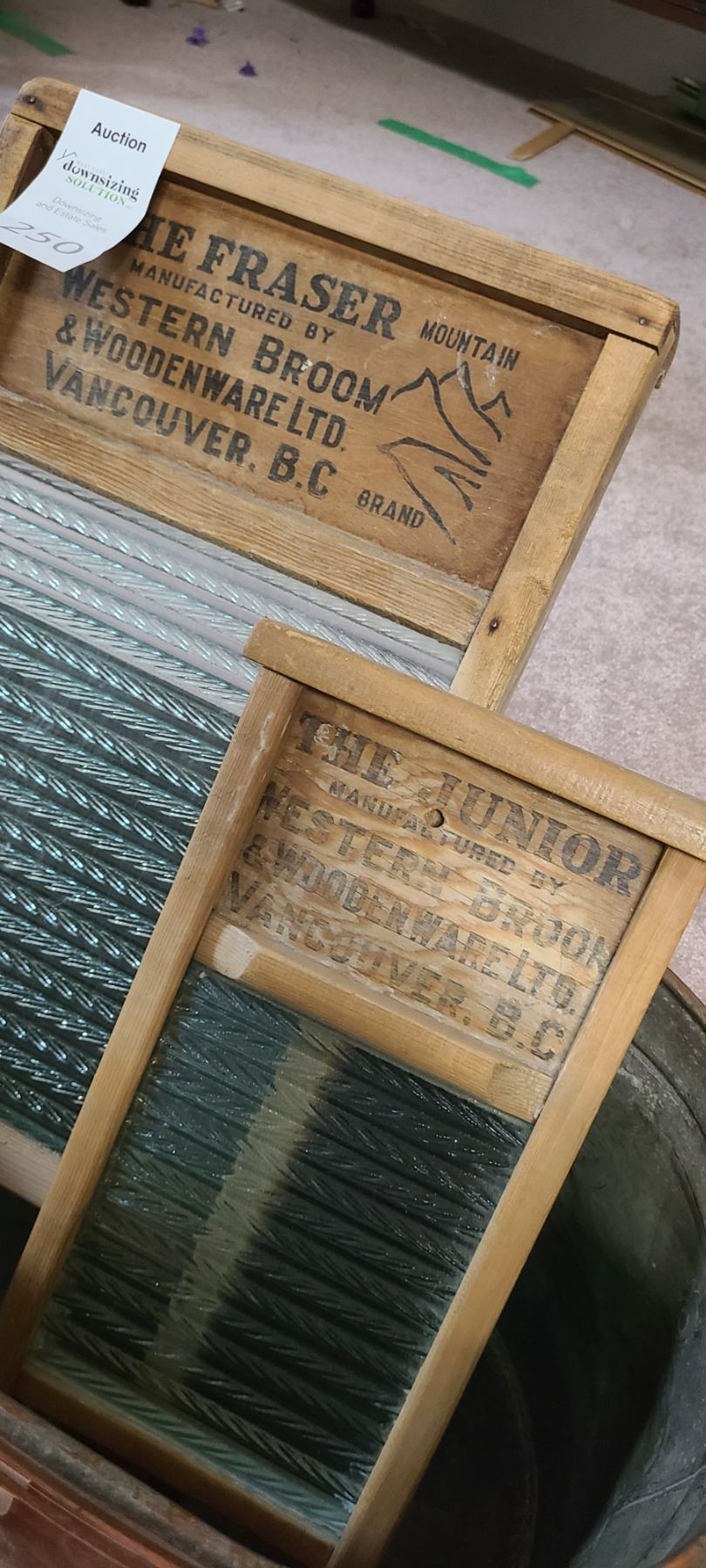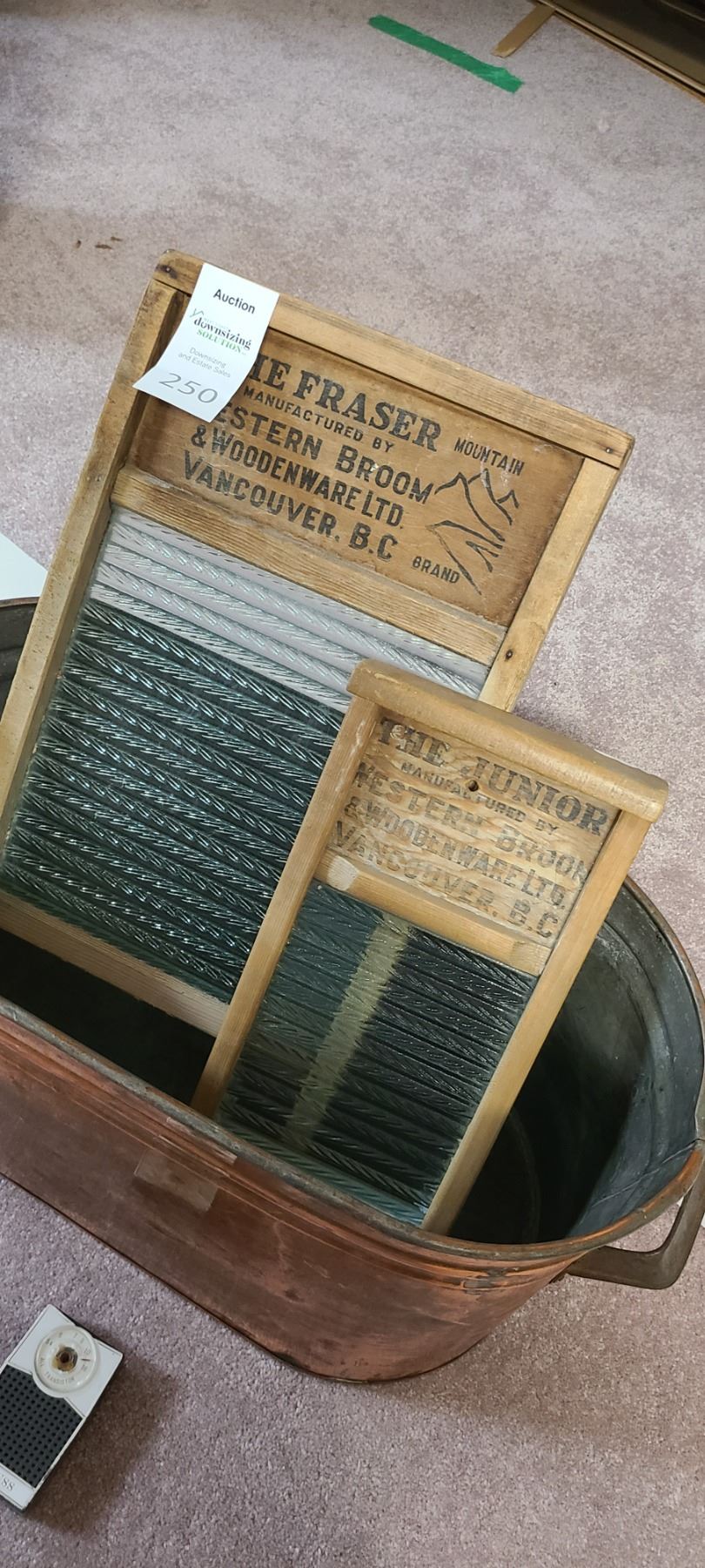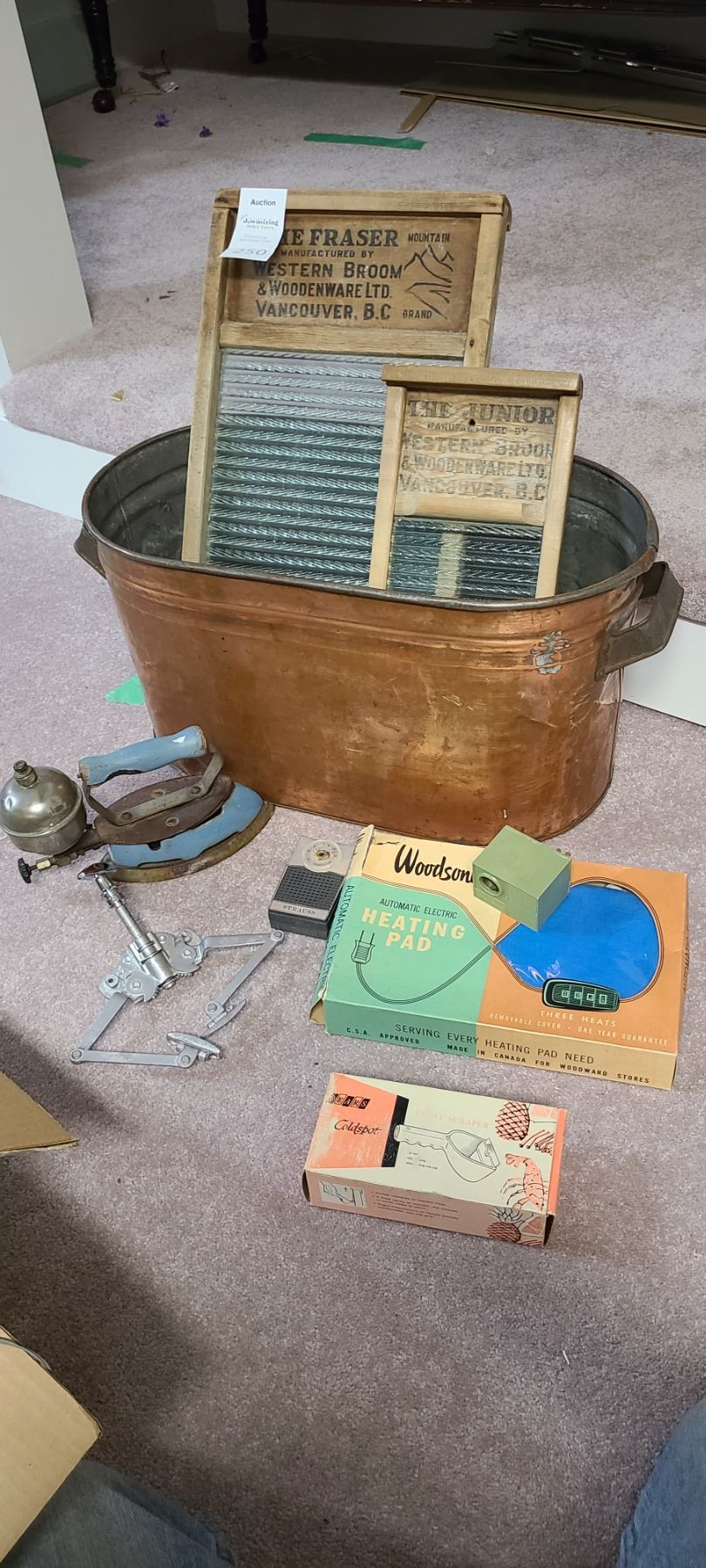 Copper boiler, iron, washing boards. Please bring packing materials. Pick up at 11 am.