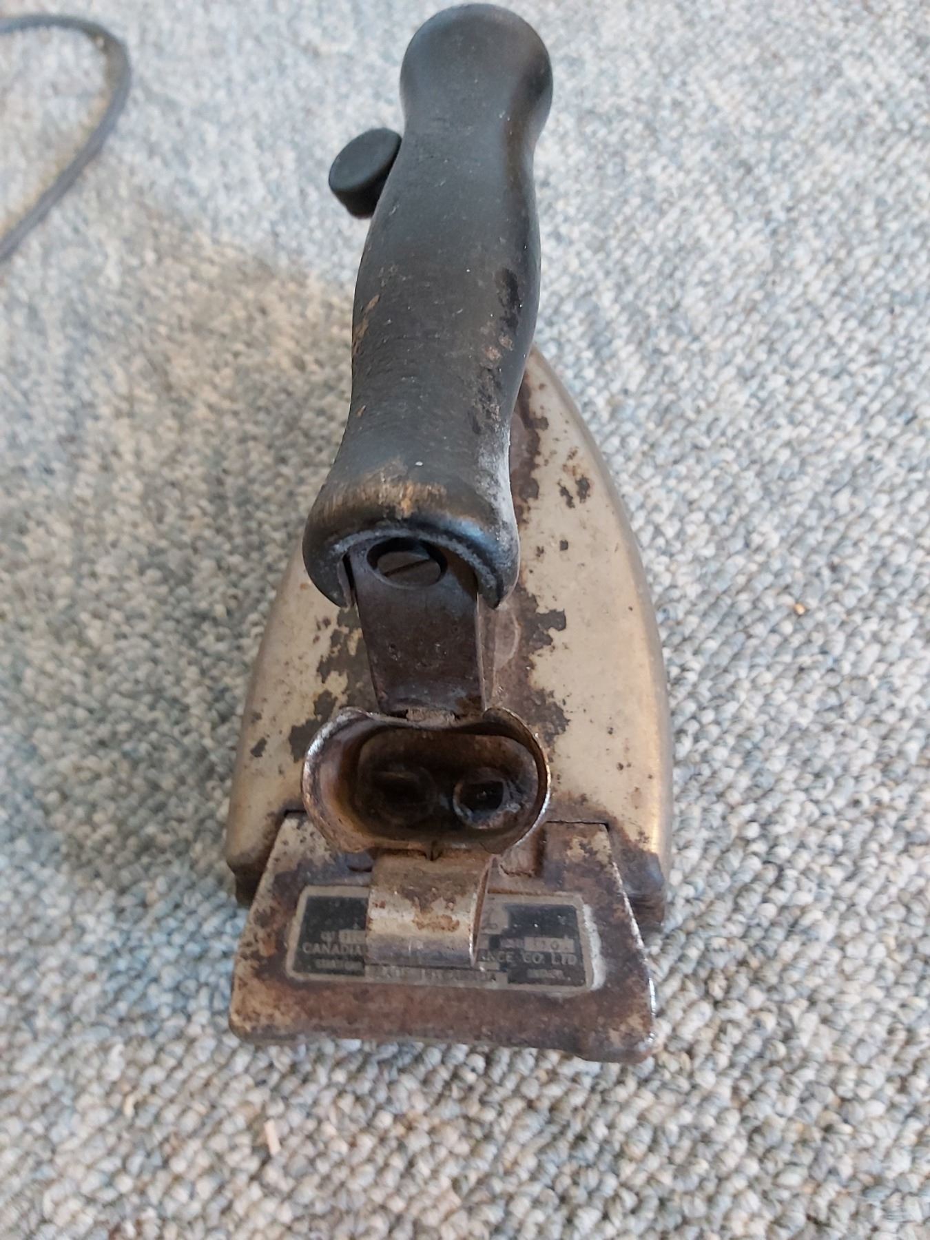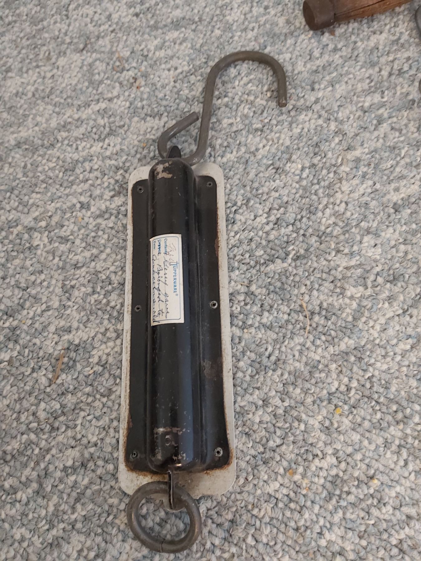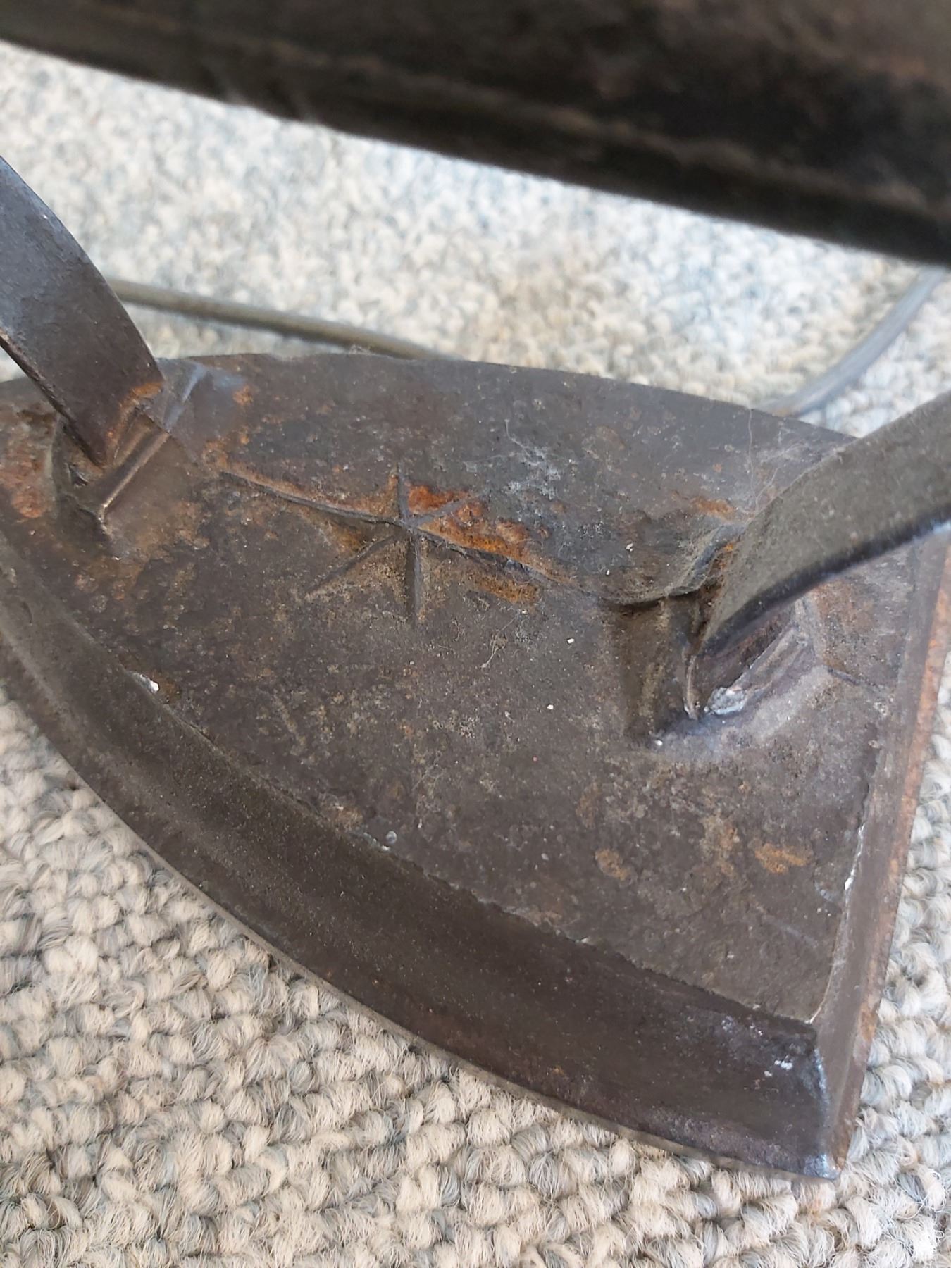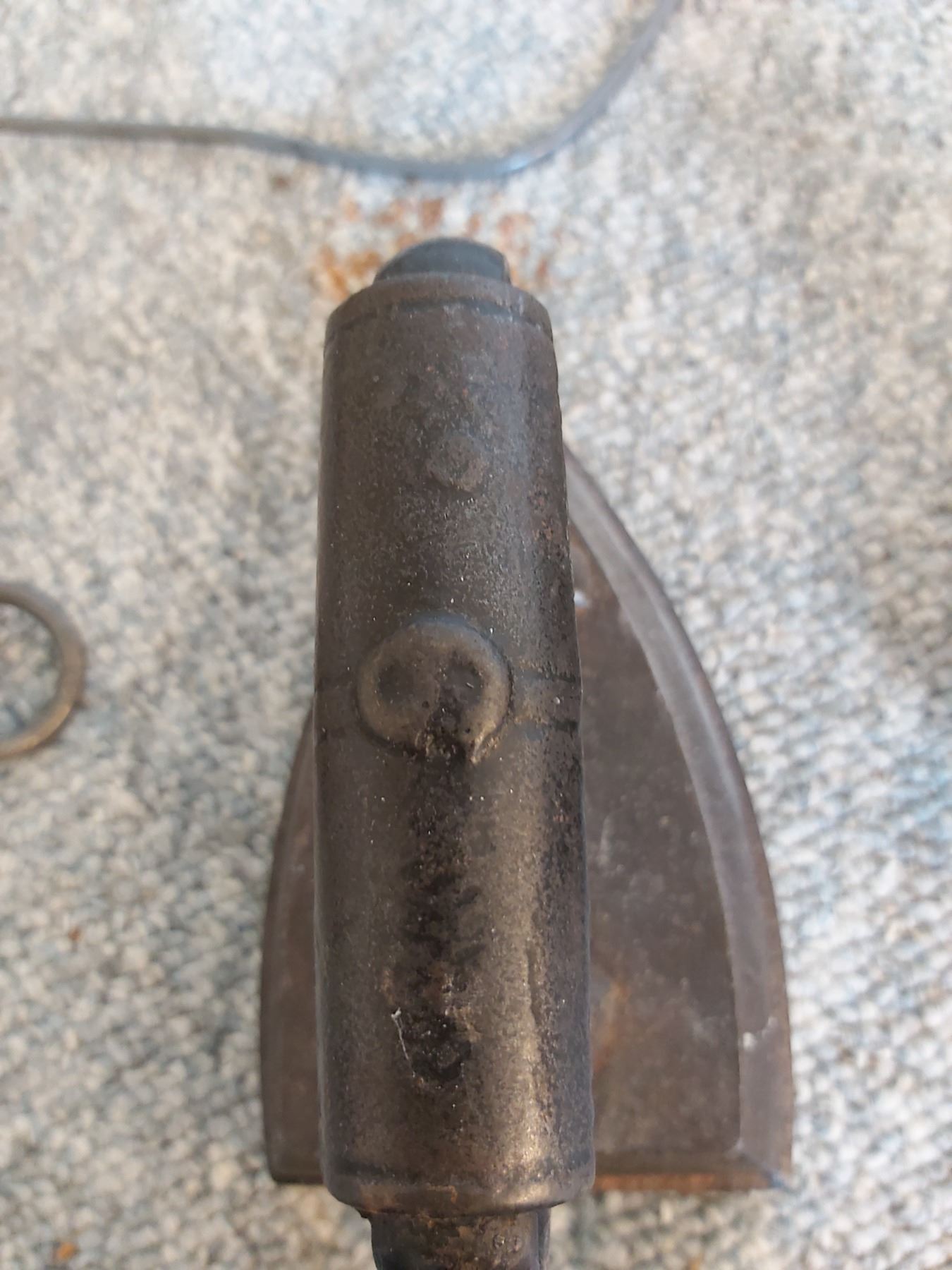 Antique irons, wrenches, rug beater, shoe making forms, and hand scale. Bring boxes.