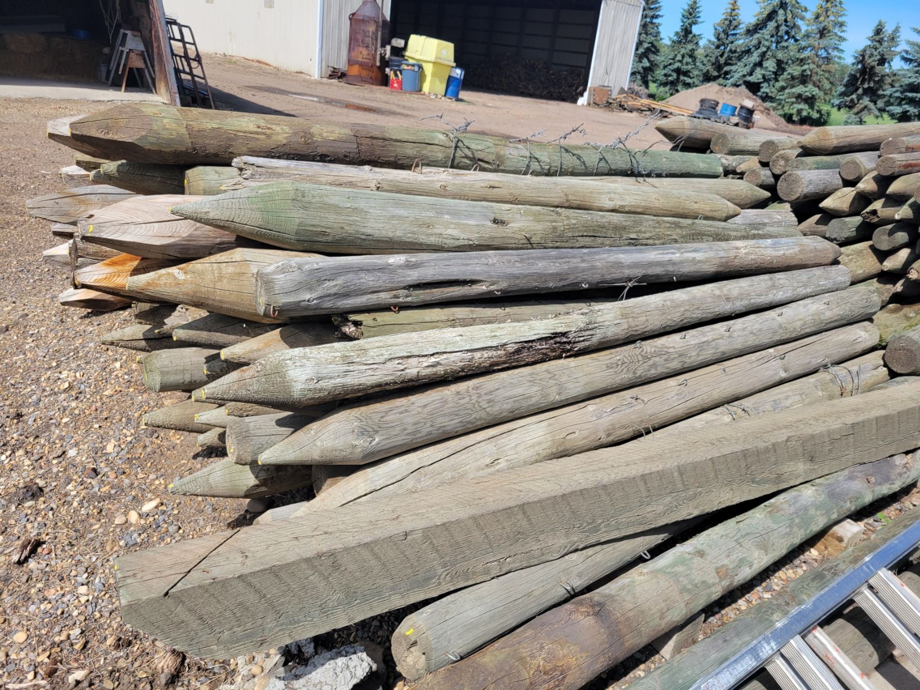 Approx. 82 Fence posts, approx. 7-8 ft x 4-5 in. Absolutely NO REMOVAL Between July 31st to Aug 4th, PH: Conrad (780) 818-6179