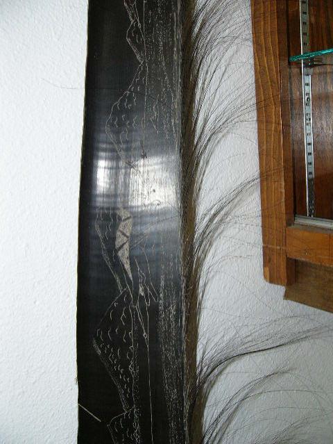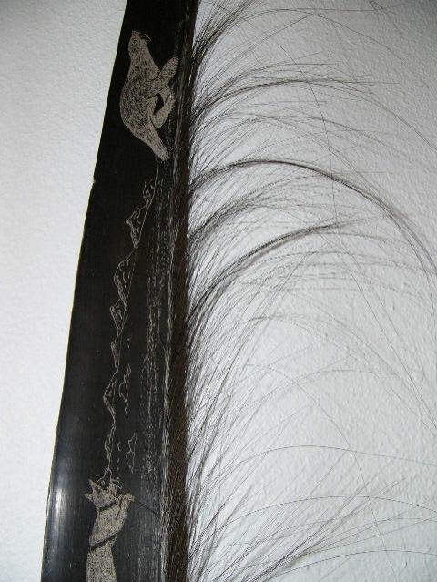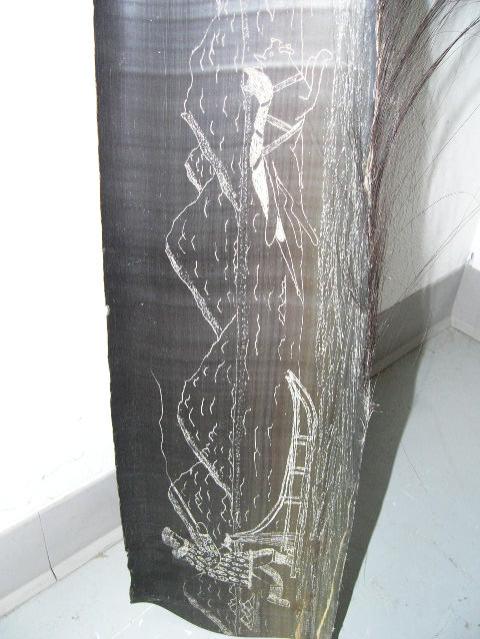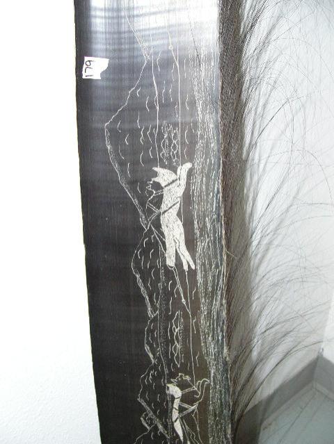 Approx. 9' scrimshawed baleen with dog sled and team (202)