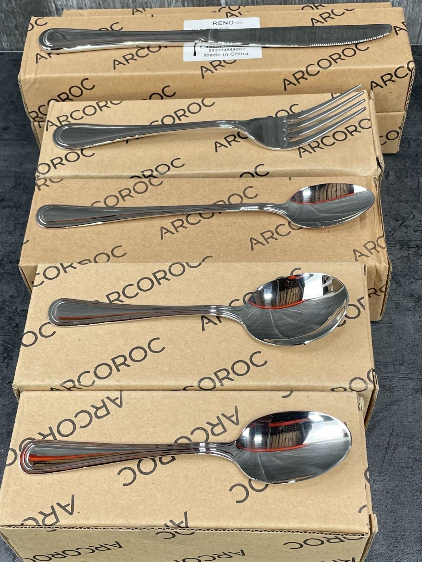 Arcoroc Reno Dinner Forks, Dinner Knives, Misc Spoons - Lot of 180pcs | RC501 x 36(1) RC504 x 36(3)