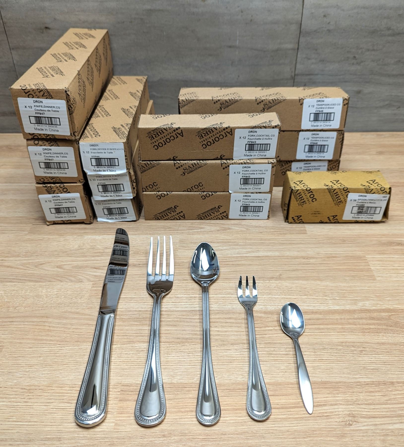 [New In Boxes,] FF947 x 36 (3 Boxes Dinner Knives) FF946 x 36 (3 Boxes Dinner Forks) FF943 x 36 (3 Boxes Cocktail Forks) FF945 x 36 (3 Boxes Teaspoons) Arcoroc FH460 x 36 (1 Box Demitasse Spoons)