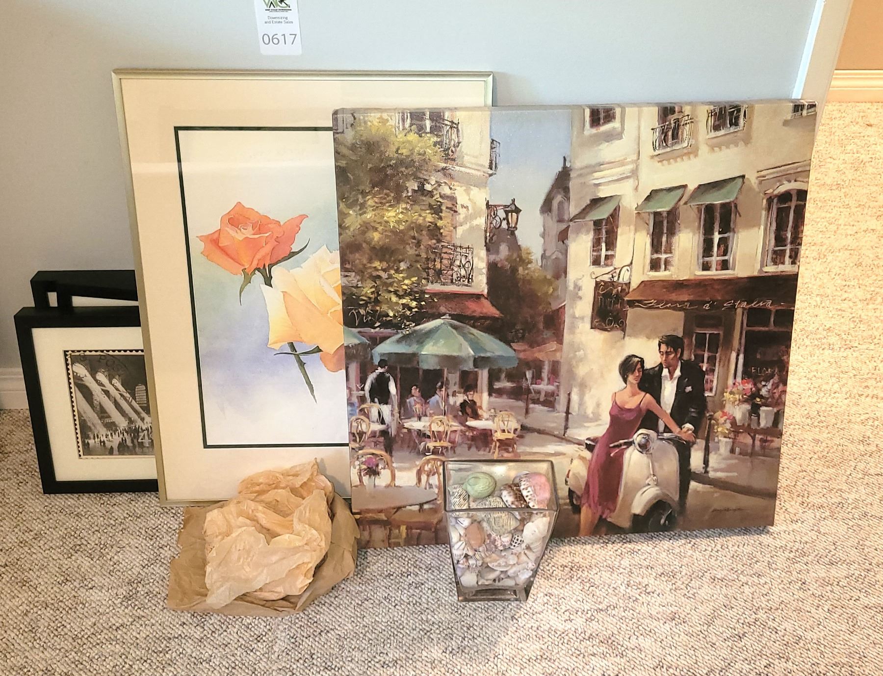 Original art signed Don Curtiss, picture frames and more. Pickup at 10 am