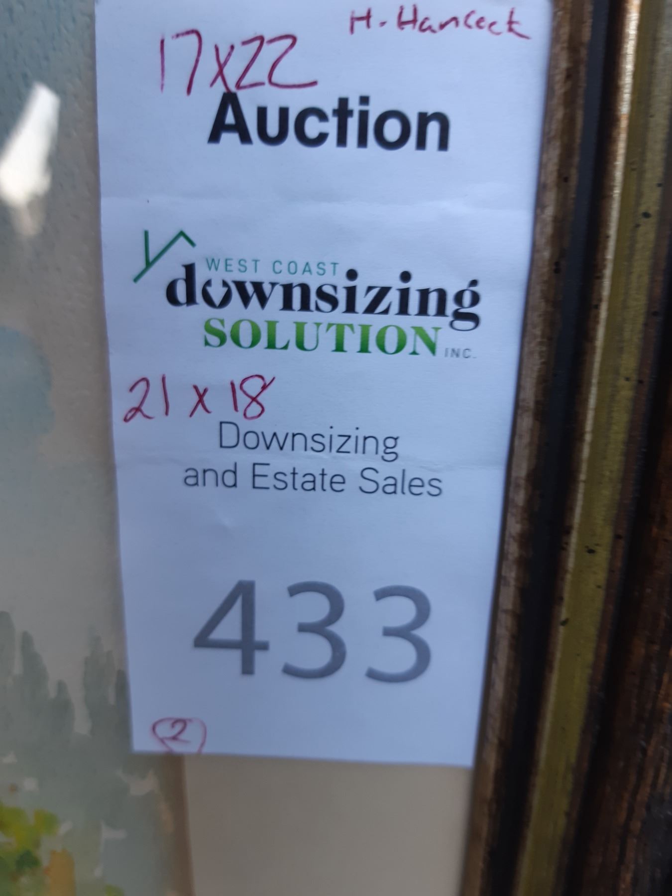 Original framed art by Hancock 17x22 and framed watercolor 21x18 Pickup at 10 am