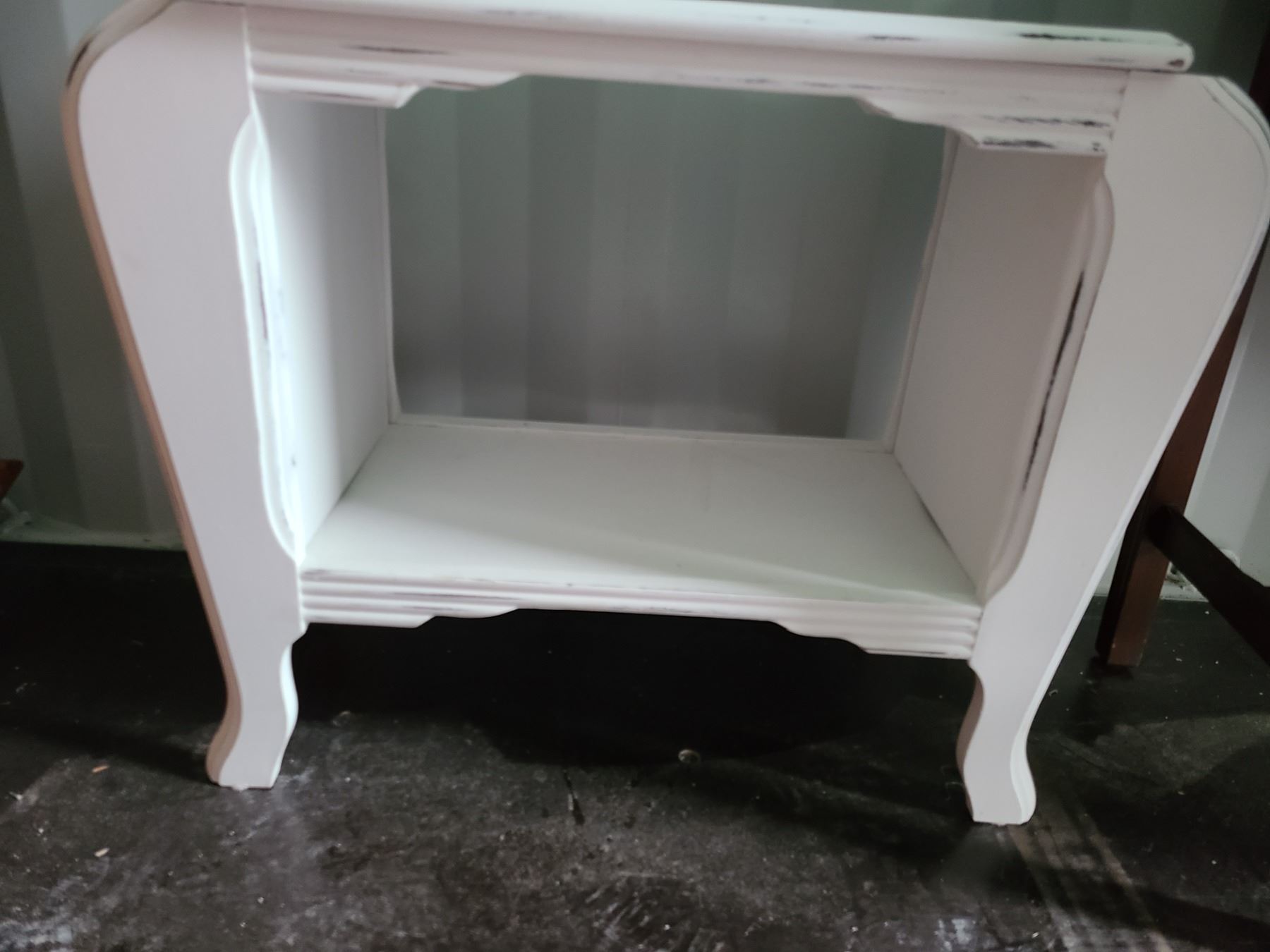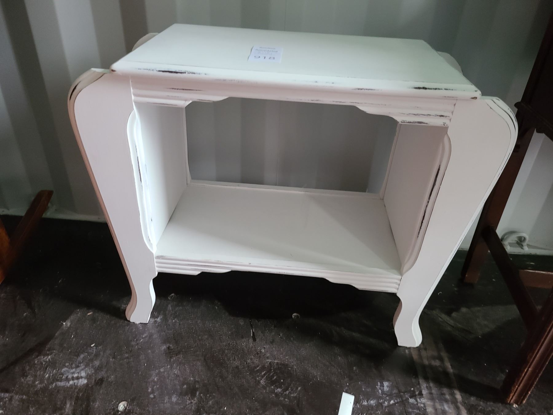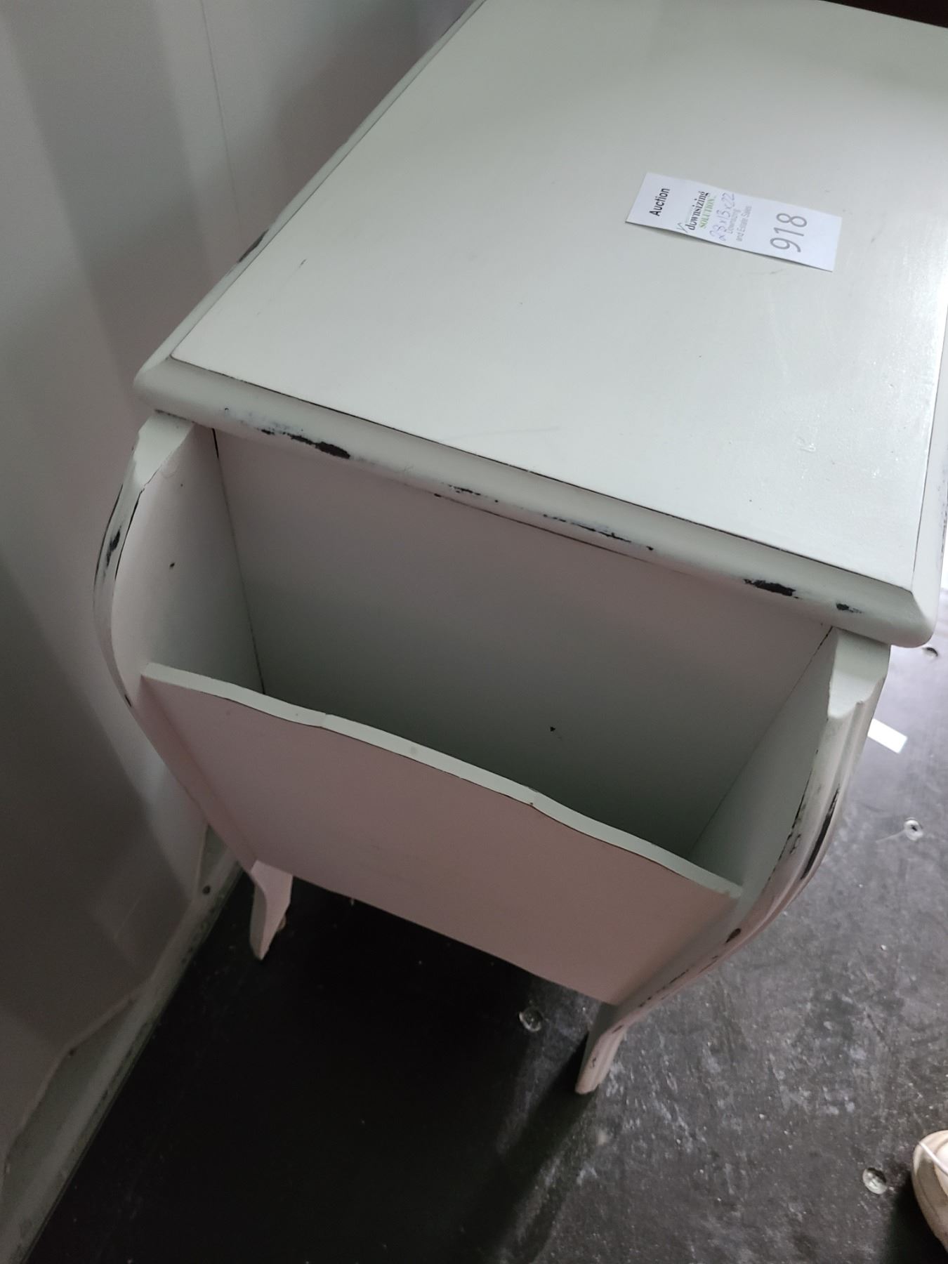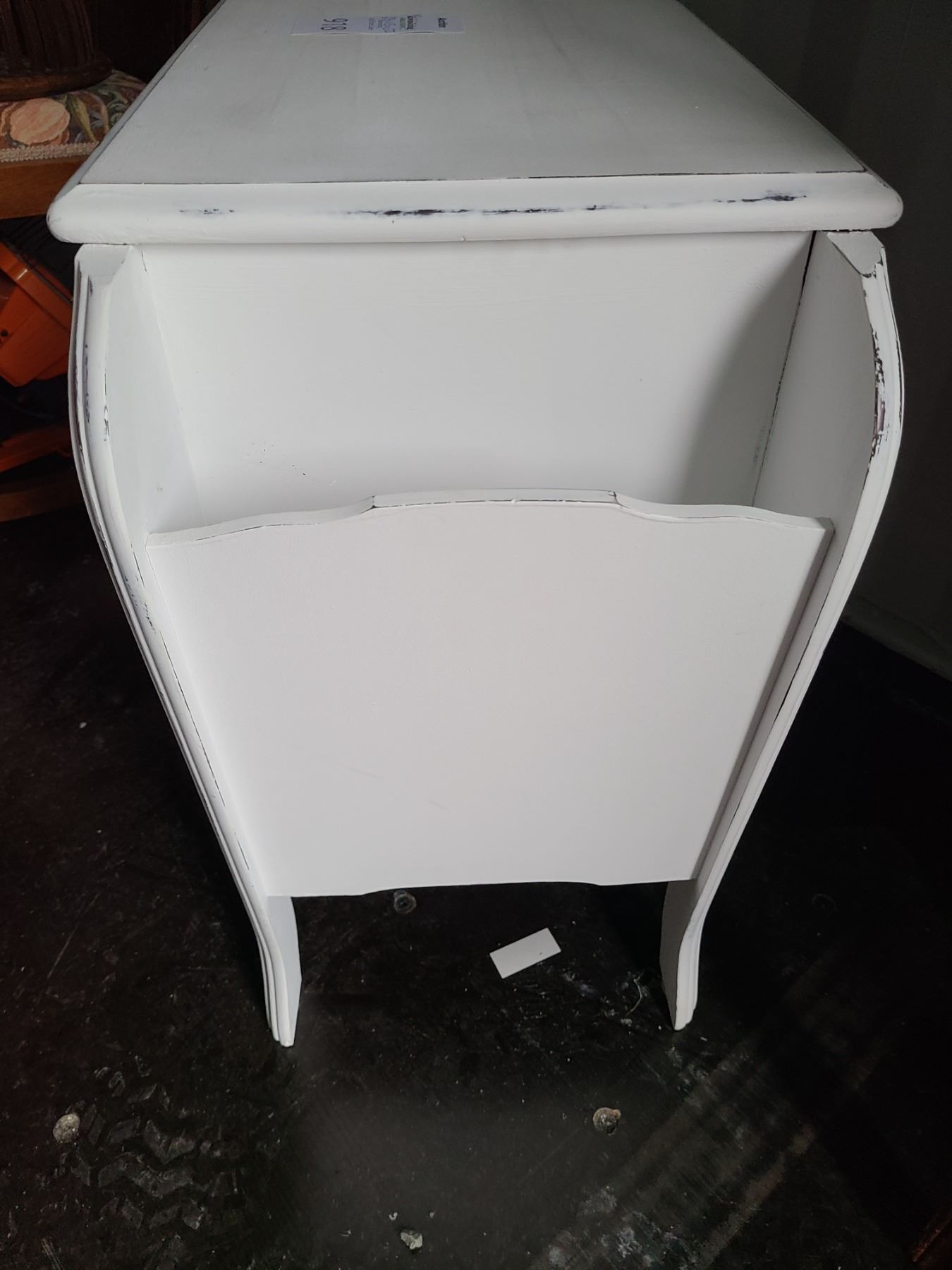Painted art deco end table with magazing racks on side, one shelf below, 28x13x22 note paint scratches and pickup at 11 am