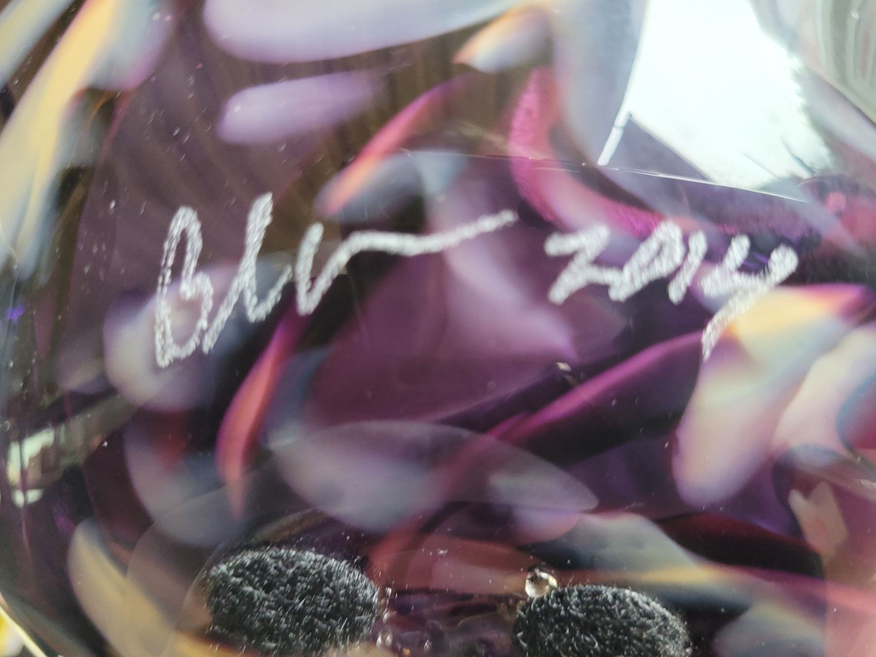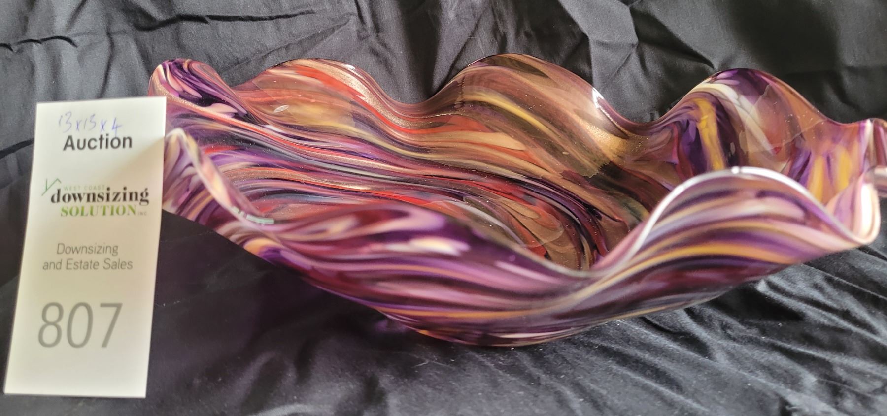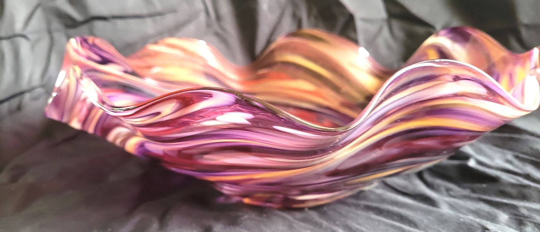 Signed art glass bowl with a swirl design. 13x13x4 Pickup at 9 am