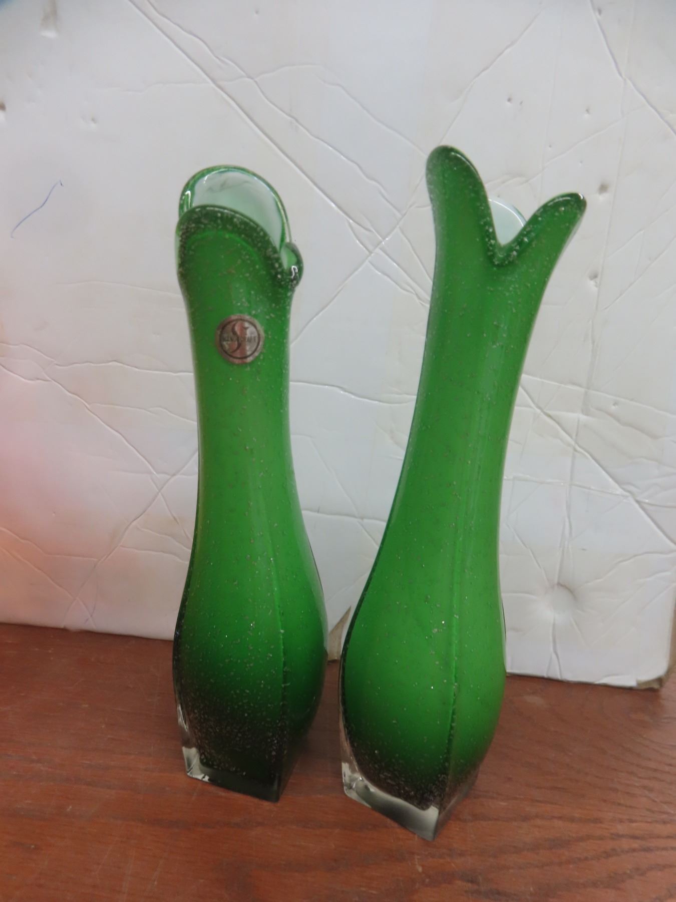 Art Glass Vases, Fluted Top & Crackle Glass +