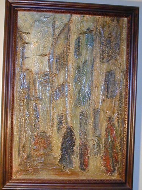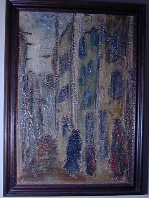 Artist Signed Impressionistic Street Scene Painting, 16 1/4" x 24"