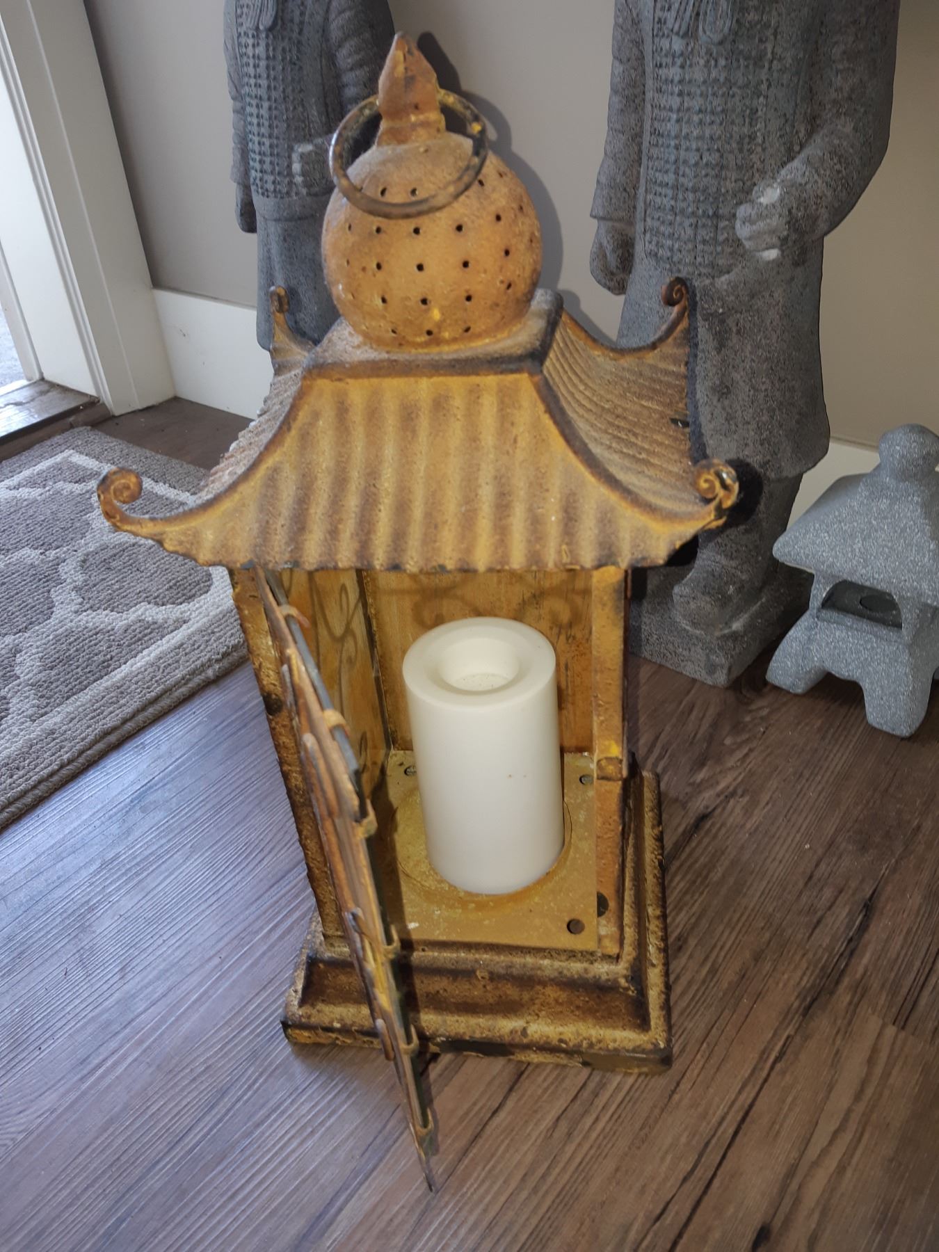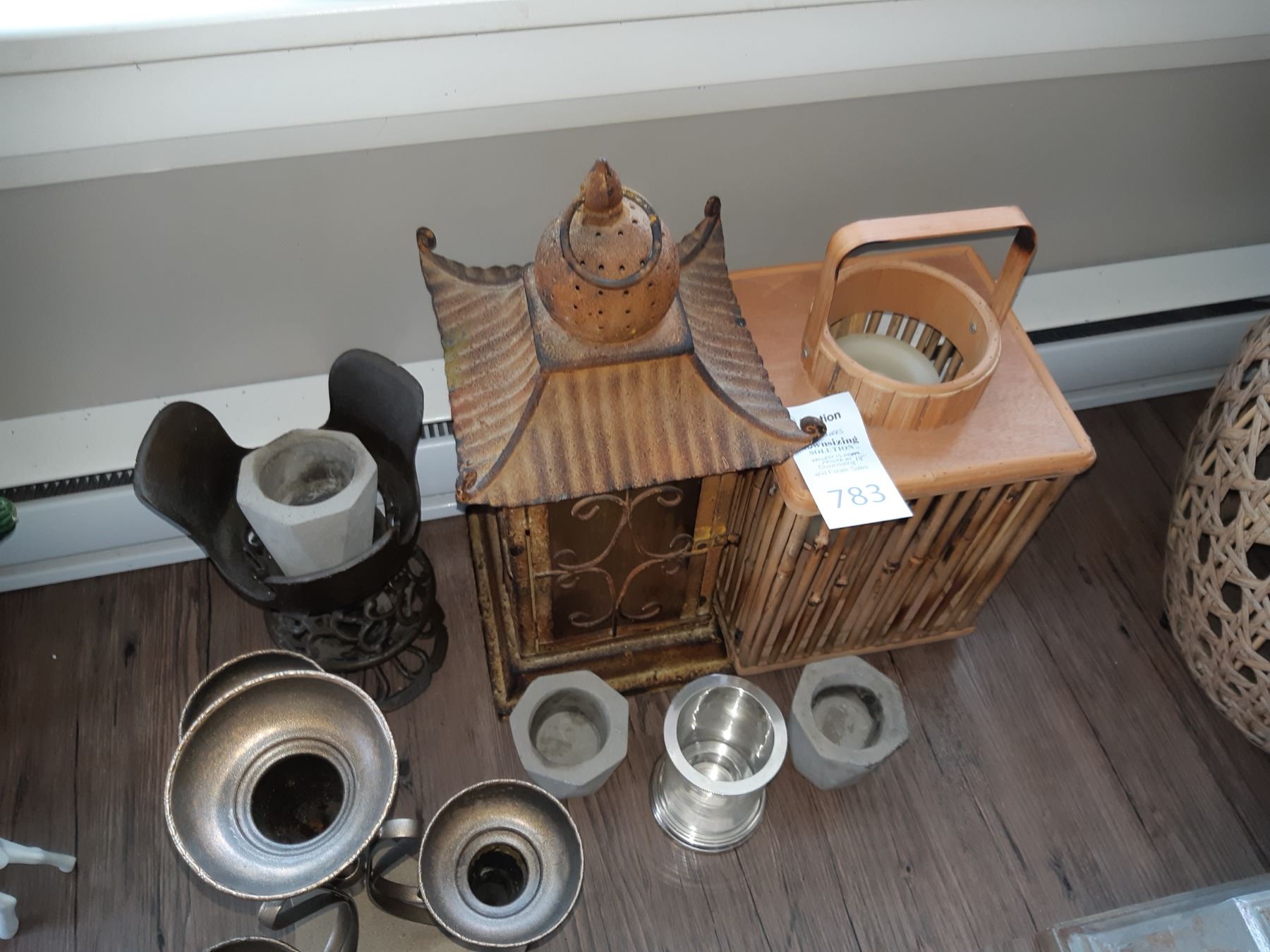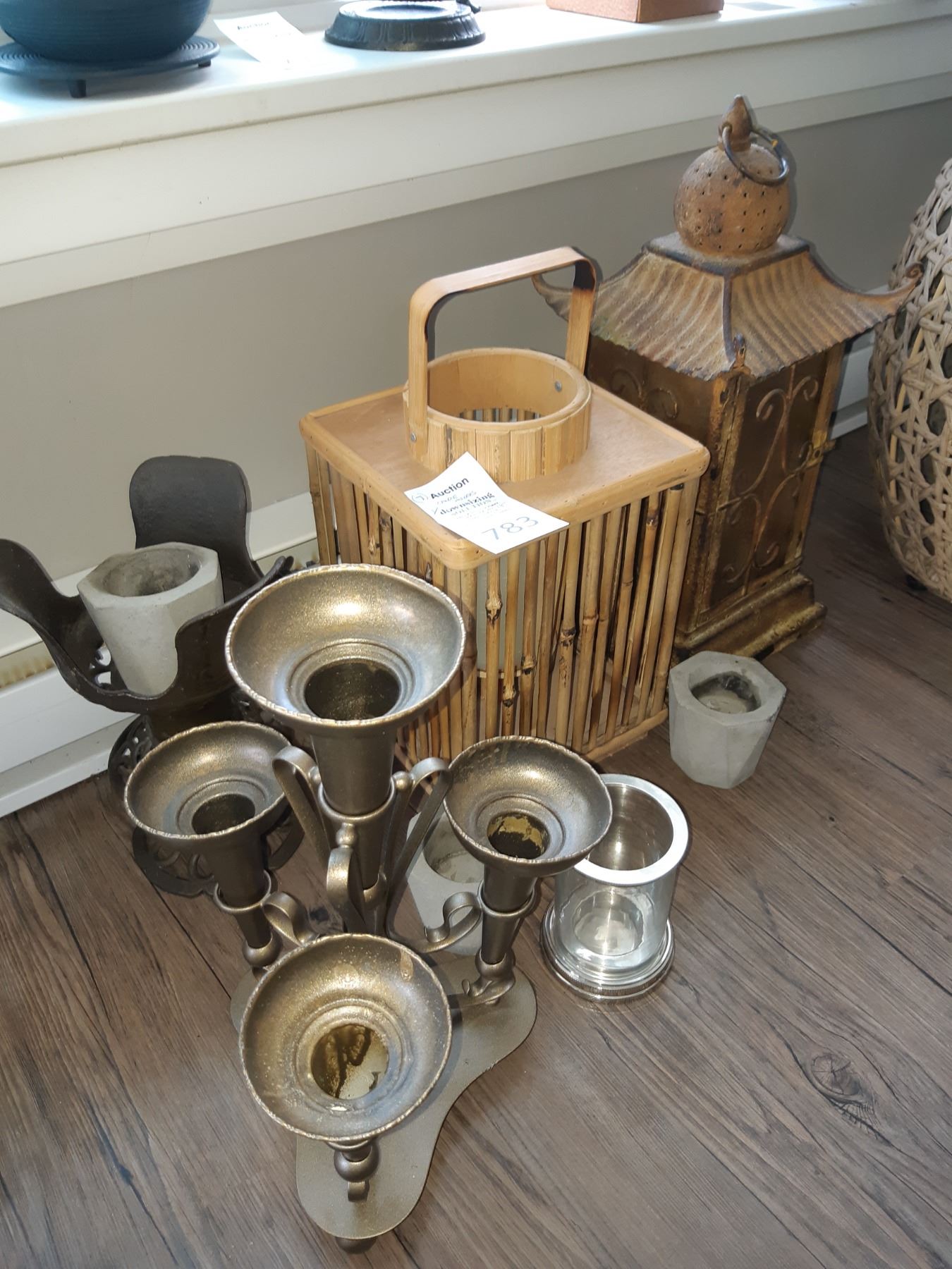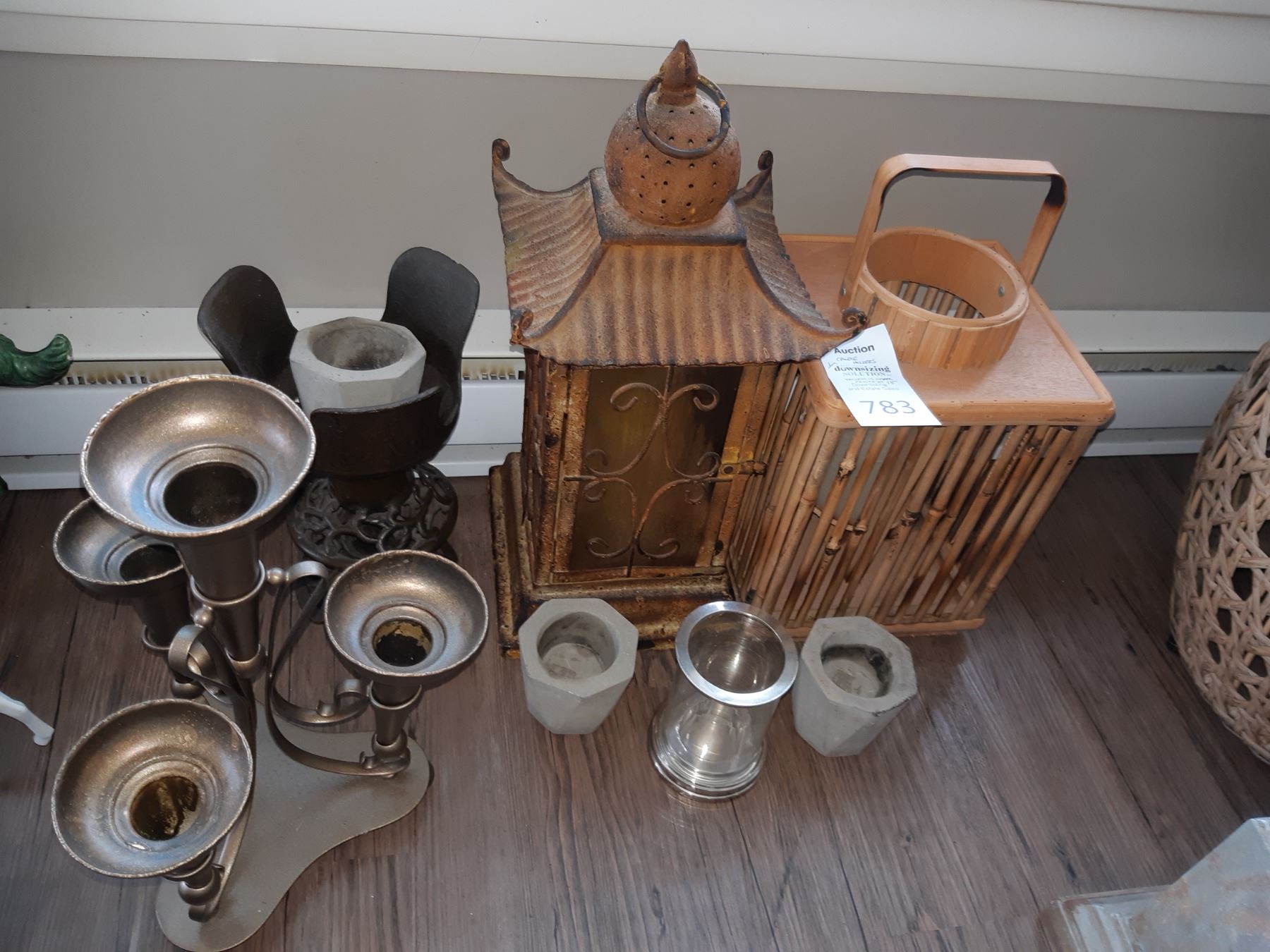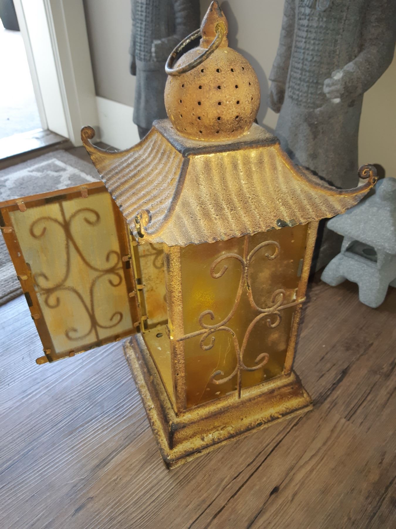 Assortment of decorative Asian themed candle holders. Tallest18". Bring packing supplies and pickup at 10 am