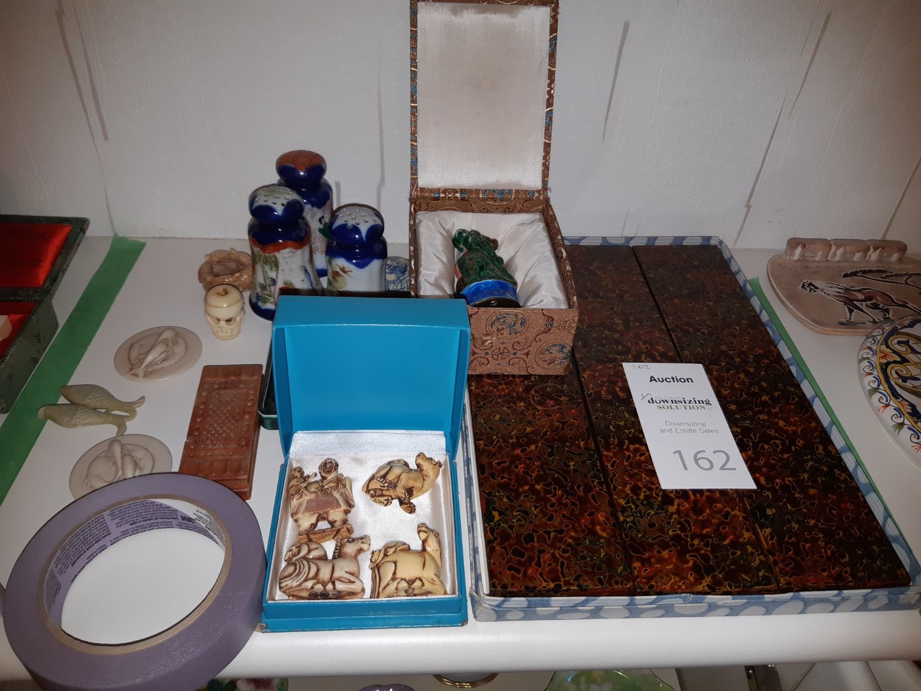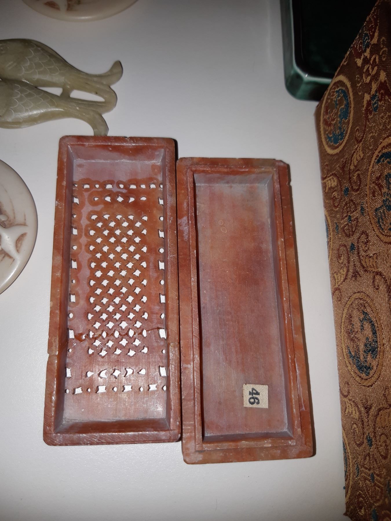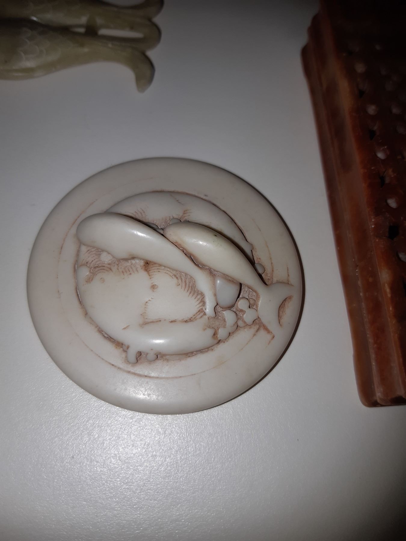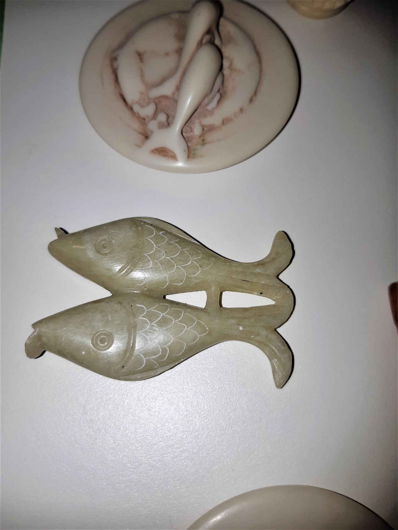 2" Jadete fish, 3" dragon, s&p, ceramic hanging pendent. Asian pendants and more. Bring packing and pickup at 9 am