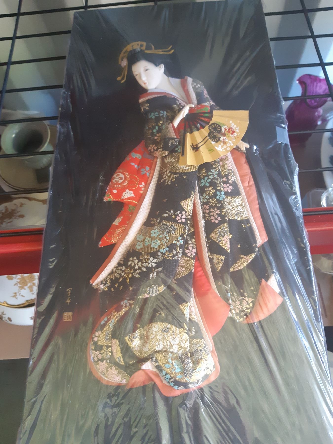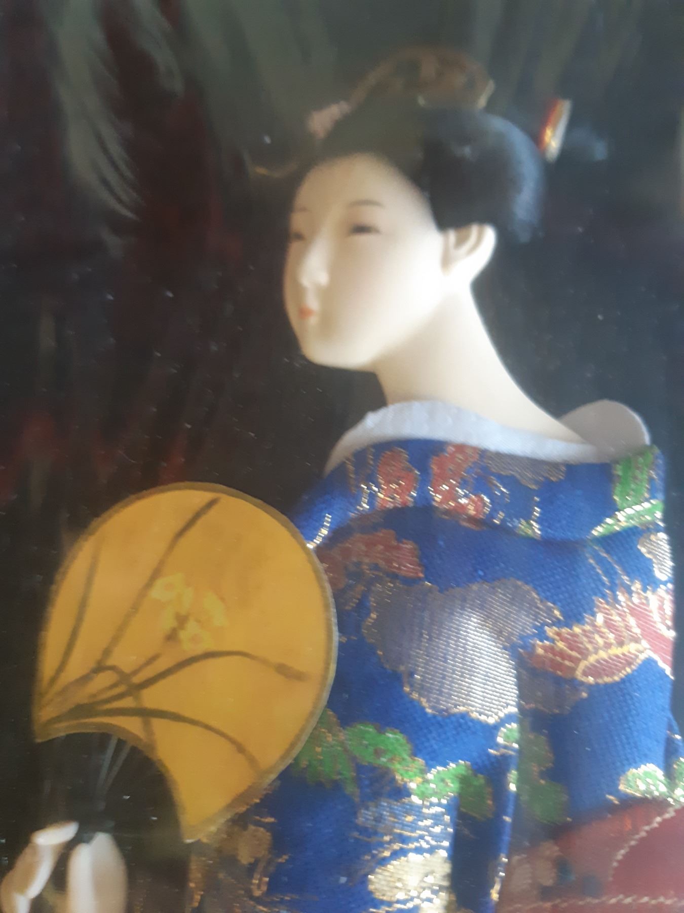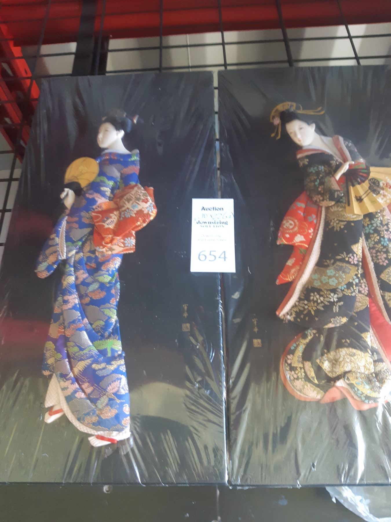 2 x Wall Plaques featuring Asian Ladies with porcelain faces. 10x22 each. Pickup at 10 am
