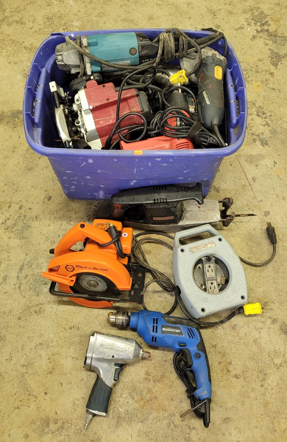 Assorted Power Tool Lot w/ Circular Saw, Pneumatic Impact Wrench, Drill, & More