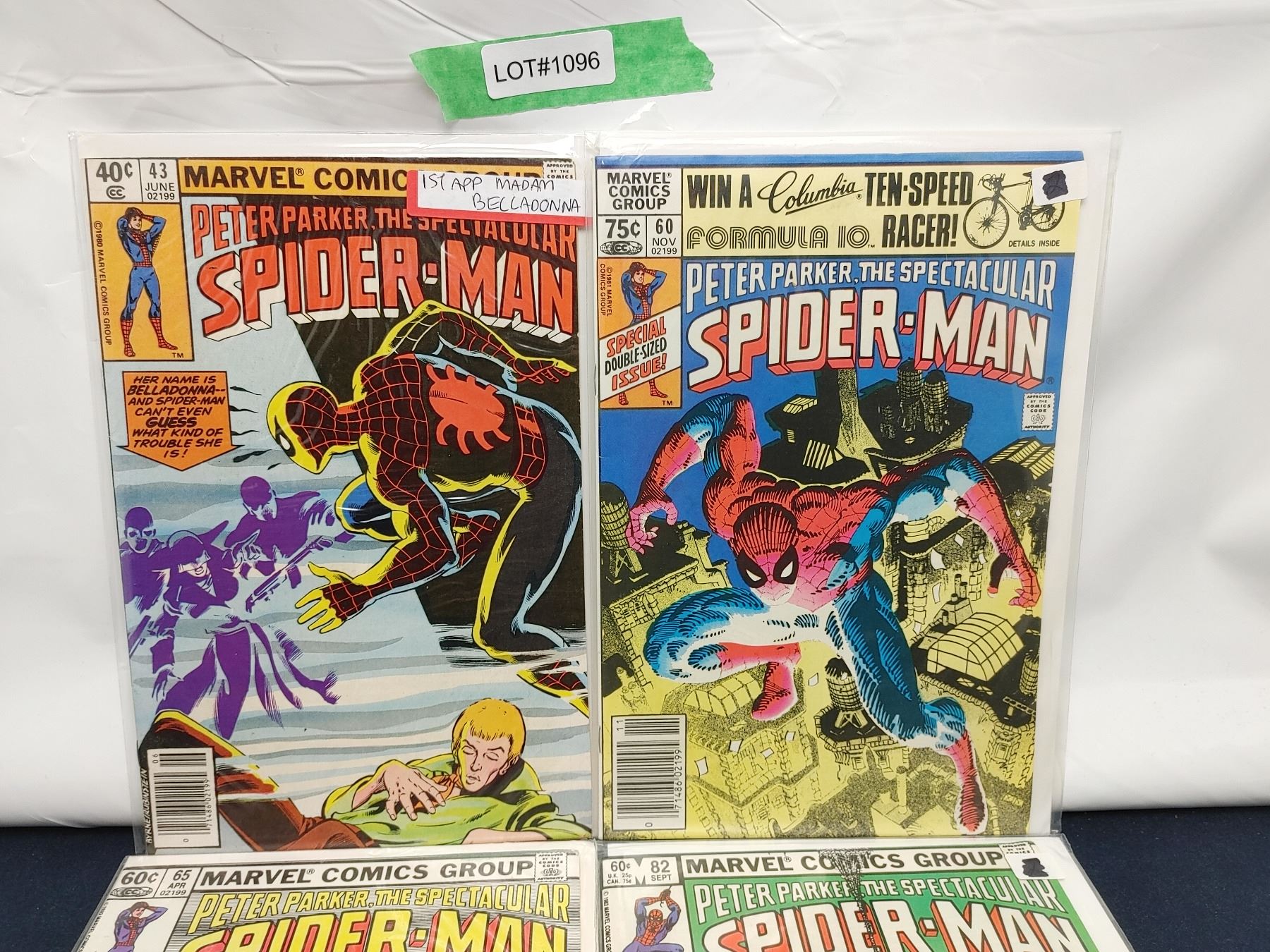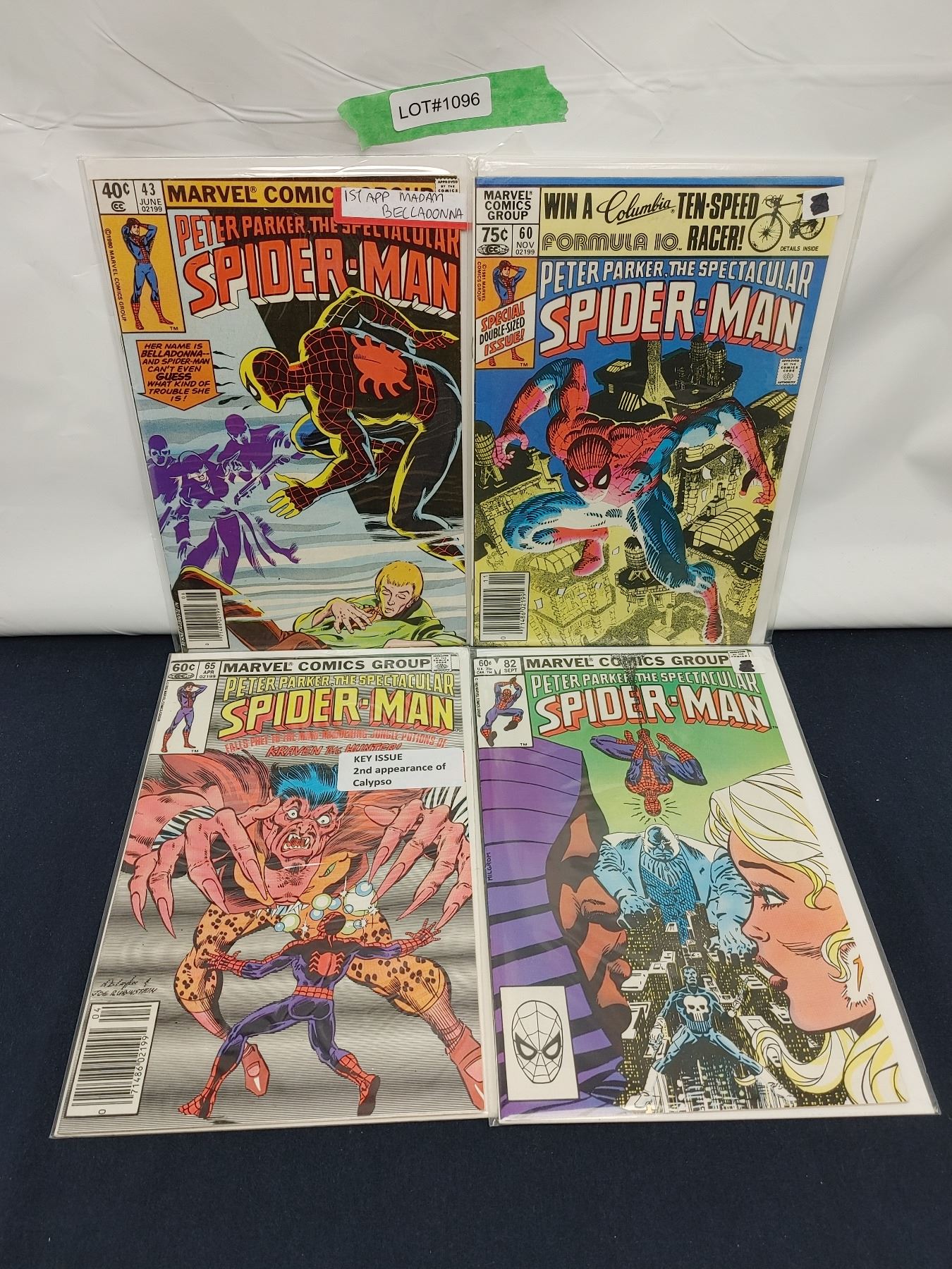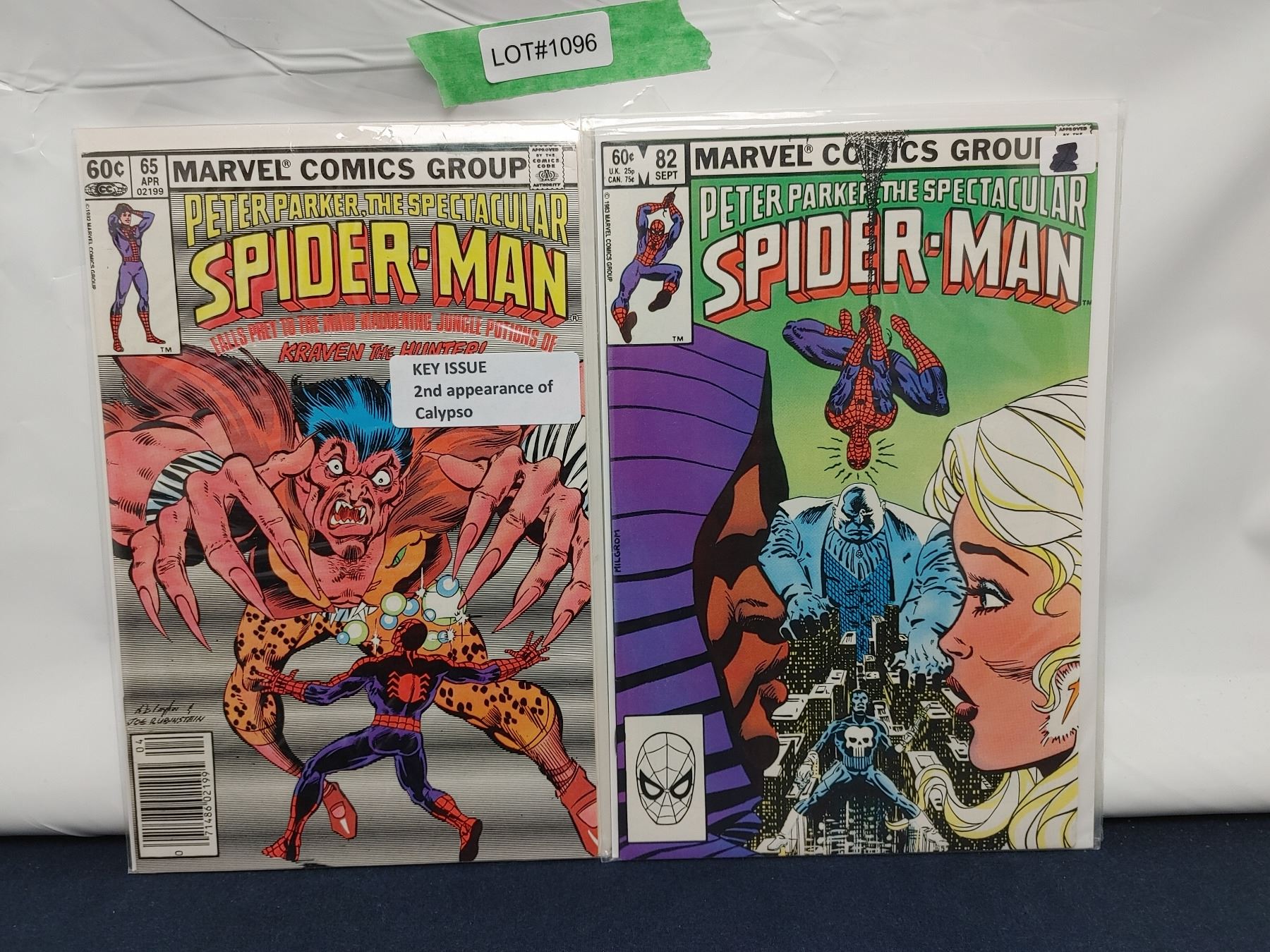 Spectacular Spider-Man #43 KEY(1st Appearance Roderick Kingsley and Madam Belladonna), 60 KEY(Origin of Spider-Man Retold), 65 KEY(2nd Appearance Calypso, 82 KEY(1st Battle between Punisher and Kingpin)