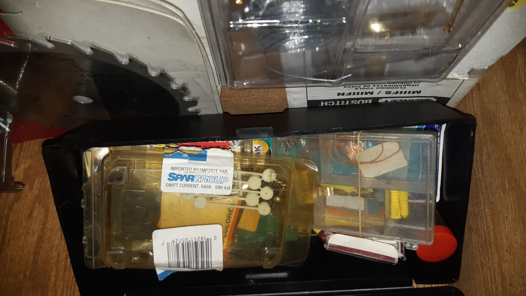 New Saw Blades, Tin Snips, Spray Gun and more. Bring packing Category C. Pick up at 1pm.