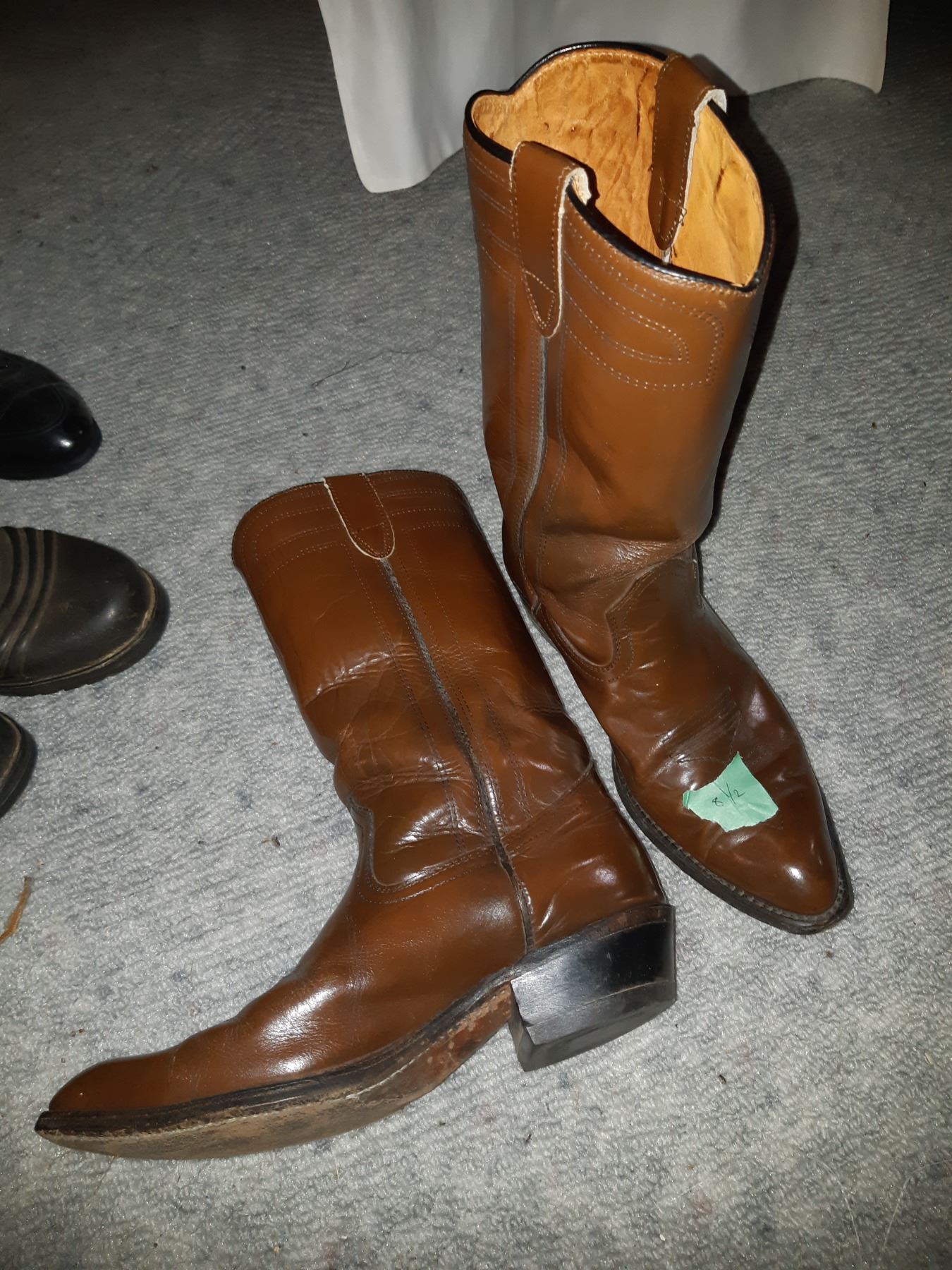 Snow boots, cowboy boots, and skates. Please bring packing materials. Pick up at 9 am.