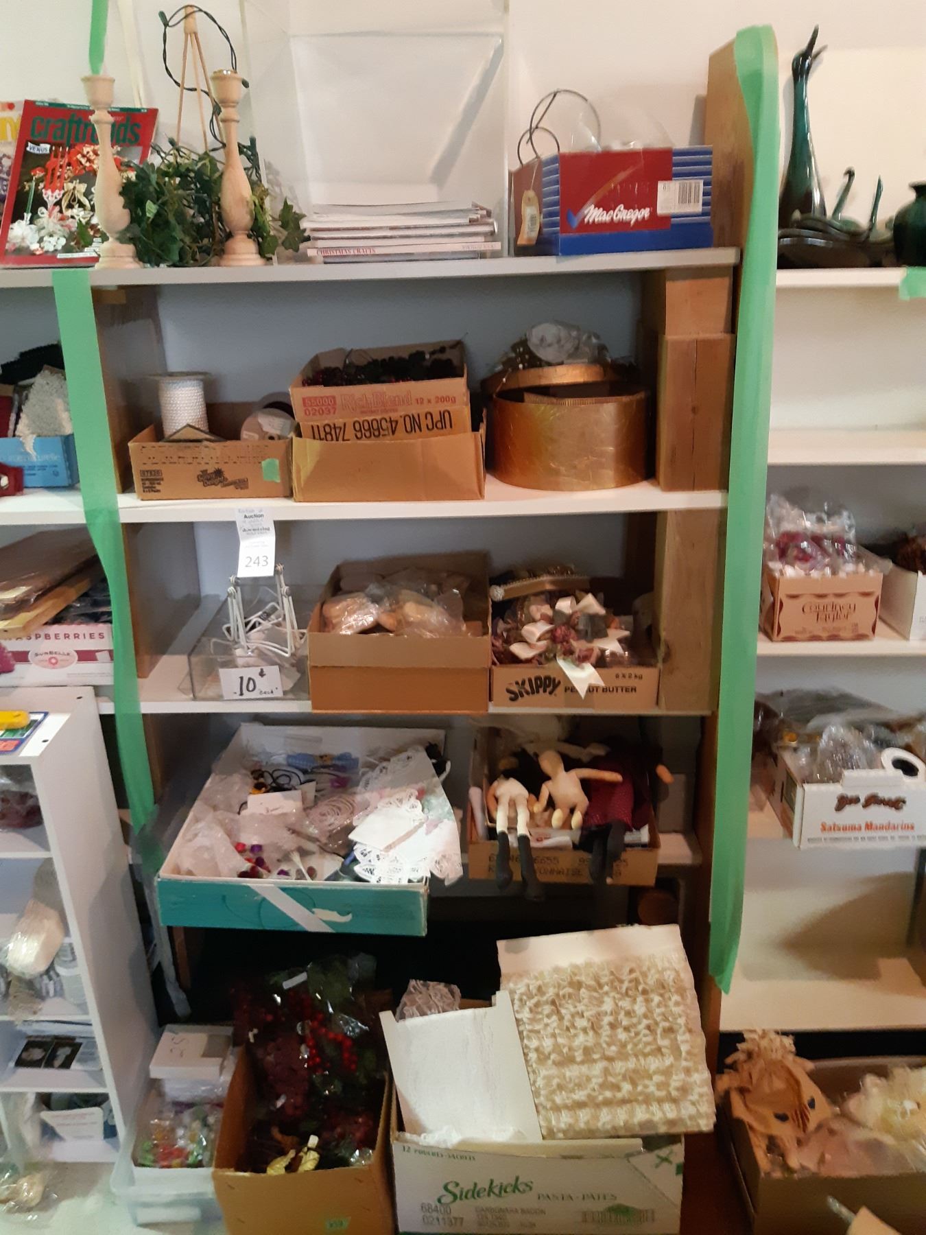Boxes within boxes, wooden hearts, miniature cloths clips, little flowers, soft cloth dolls,lace, pompons, faux fruits, frame holders and more. Please bring packing materials. Pick up at 9 am.
