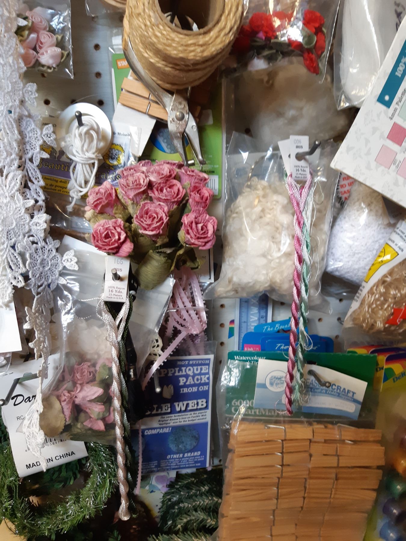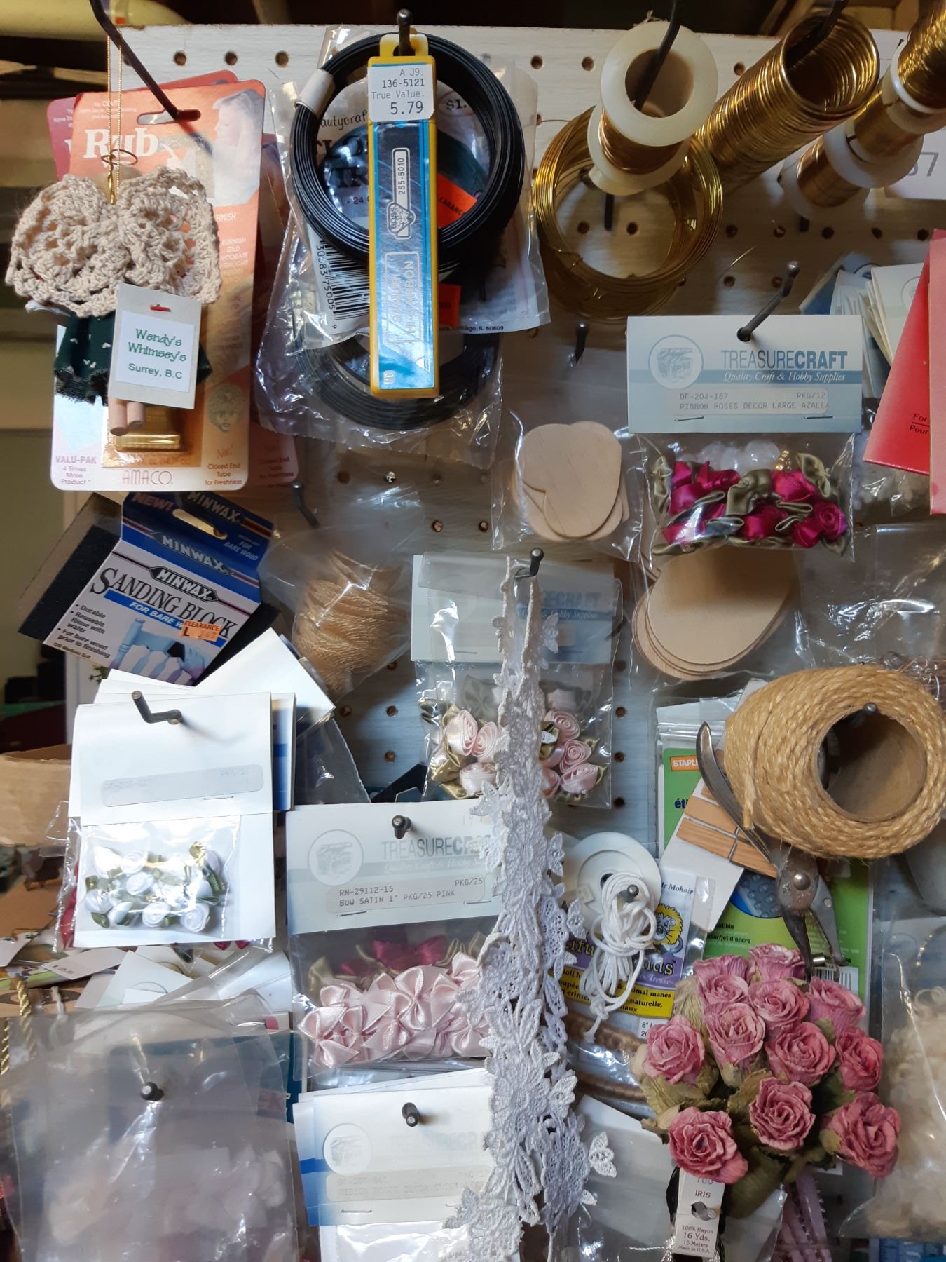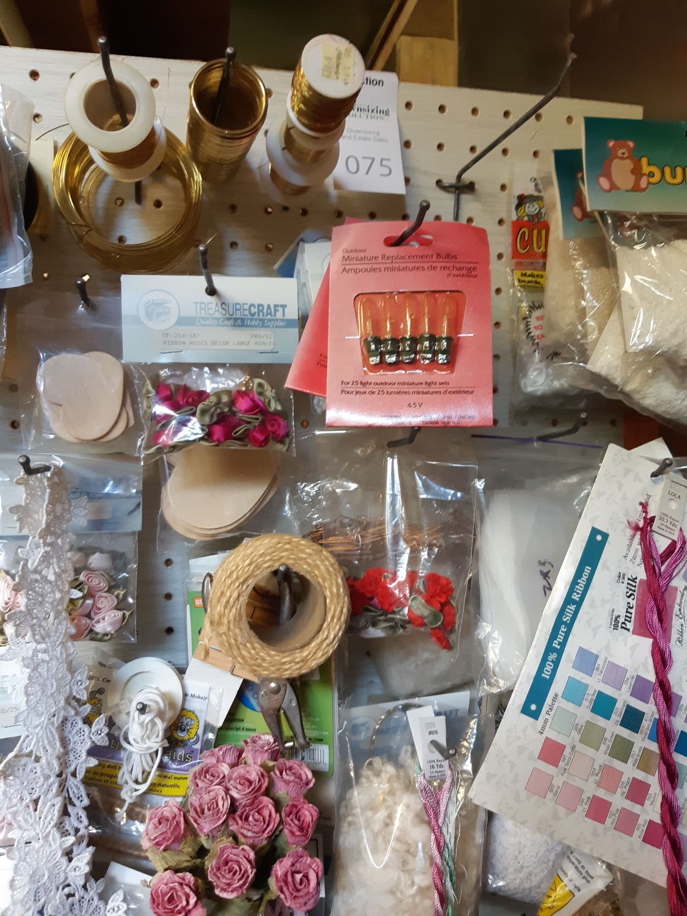 Crafting materials, min wreaths, mini flowers, string, doll hair, bits and more. Please bring packing materials. Pick up at 11:30 am.