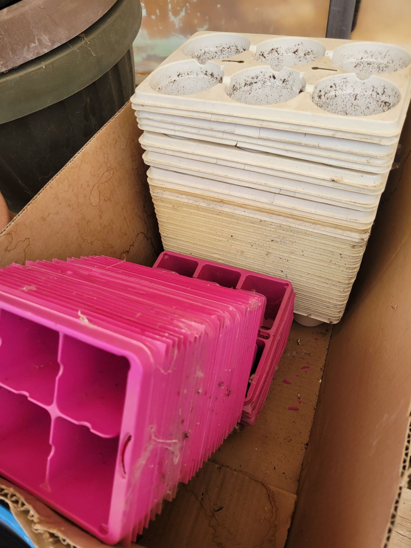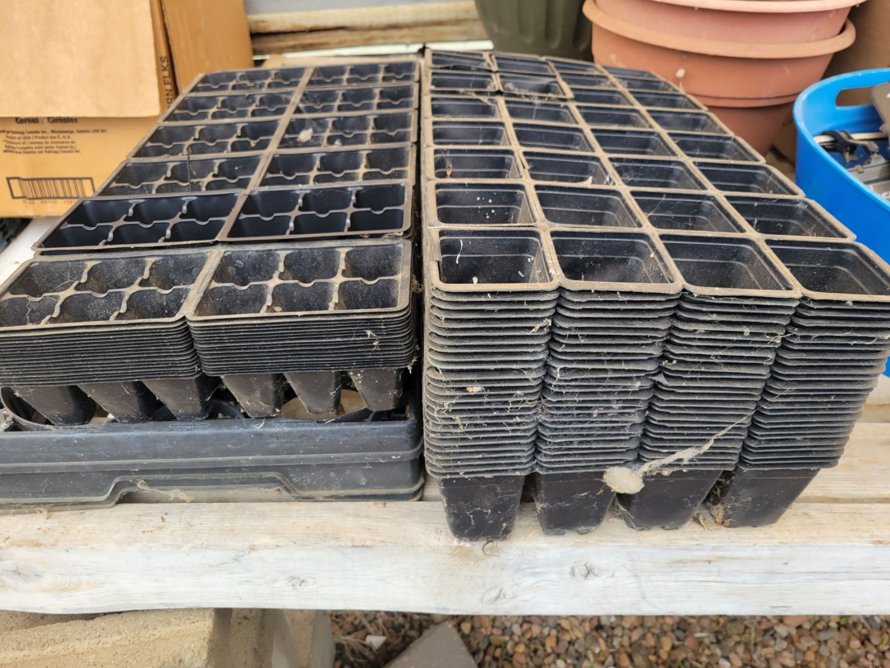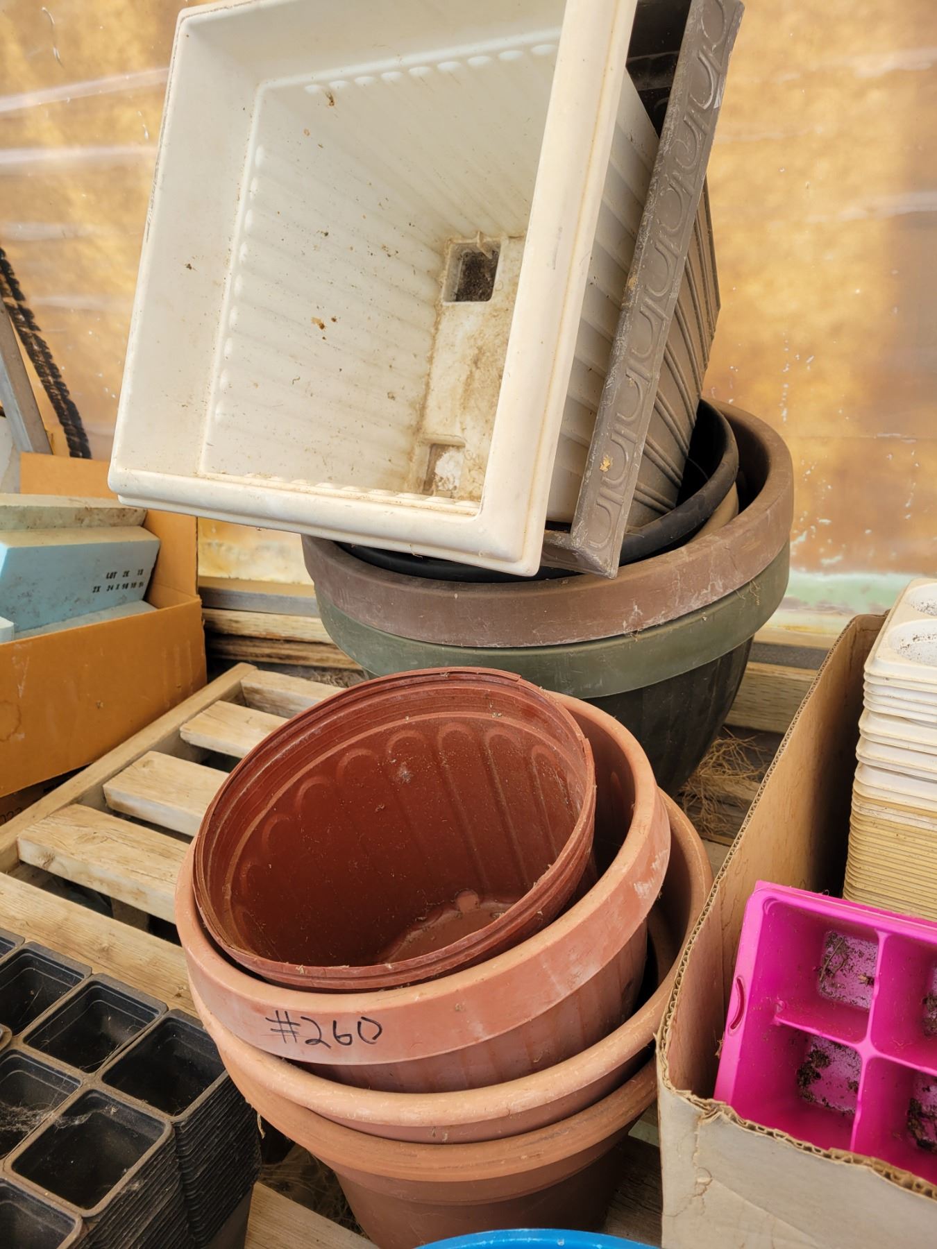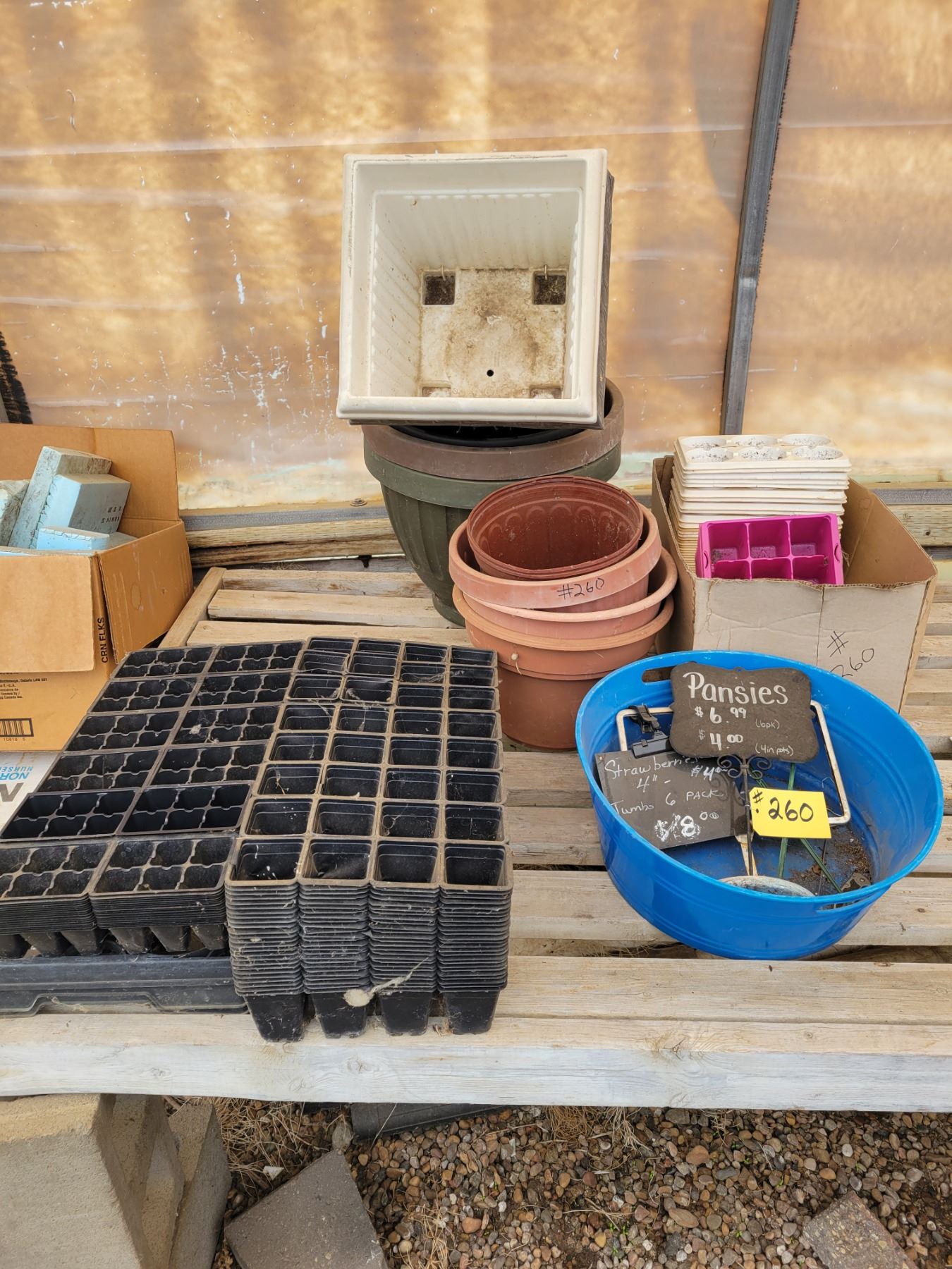 Asst Pots, 106's, 3 1/2" pots, planting trays, etc. ,9- 22"x5",3 16"x5"