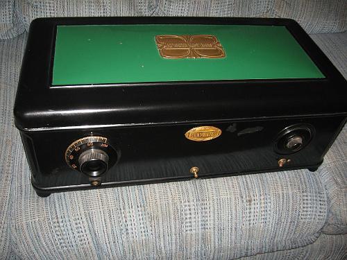 This early AC 1-dial set was nicely made and worked beautifully. Its plain metal case was improved somewhat by its slightly more stylish speaker. The design was unpopular and disappeared after this year. Sold without tubes. slight damage on front