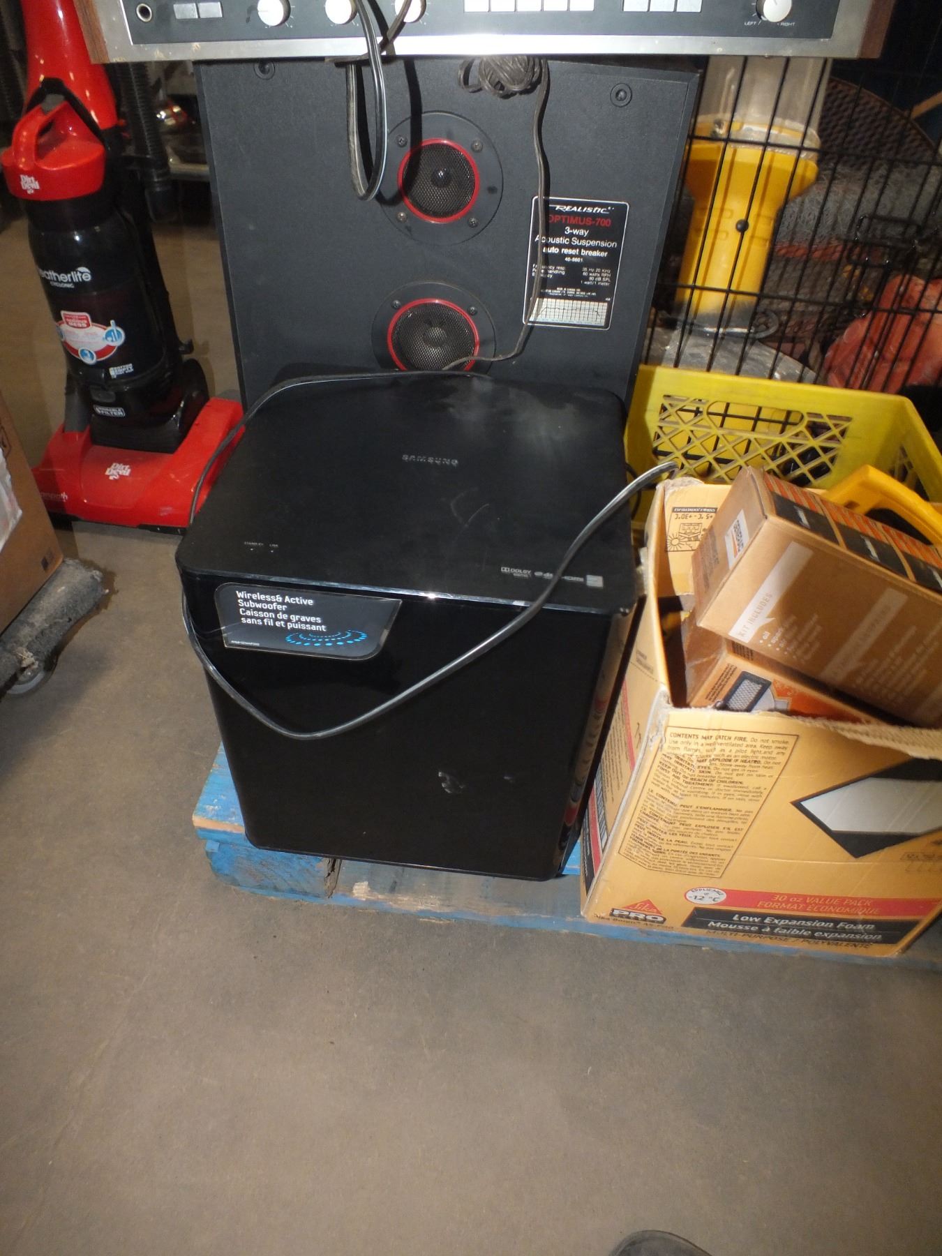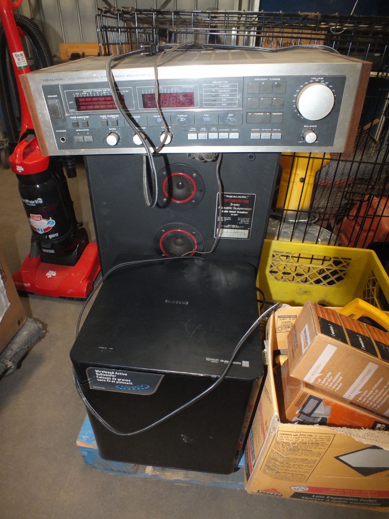 you get a old stereo receiver, 1 Samsung sub and 1 speaker...used