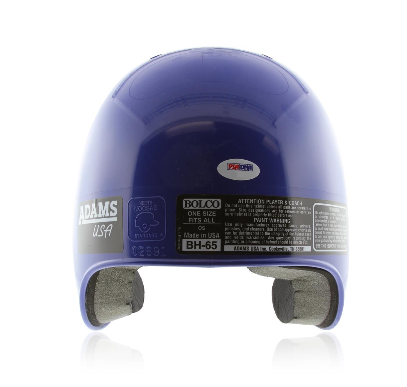 Brooklyn Dodgers signed Edwin "Duke" Snider baseball helmet. Edwin "Duke" Snider, a Hall of Famer who was once one of the kings of New York when it came to talkin' baseball in the 1950s. Snider hit 407 home runs during his 18-year big-league career with the Dodgers, Mets and Giants. He played 16 seasons for the Dodgers, making his debut for Brooklyn in 1947. He powered the Dodgers to their only World Series crown in Brooklyn in 1955 -- a year in which he hit 42 home runs and drove in a league-leading 136 RBIs -- before making the move to Los Angeles where he helped win another Series in 1959. ***PARTS OF HELMET HAVE MINOR SCRATCHES AND SCUFFS - SIGNATURE EXCELLENT***. Certificate of Authenticity included. PSA Certified.
