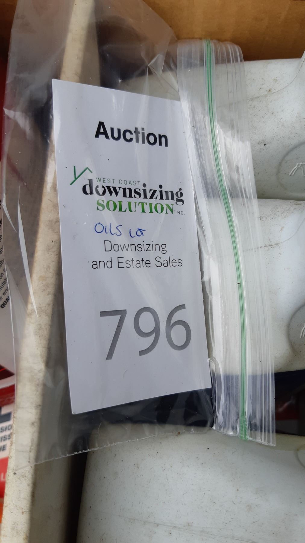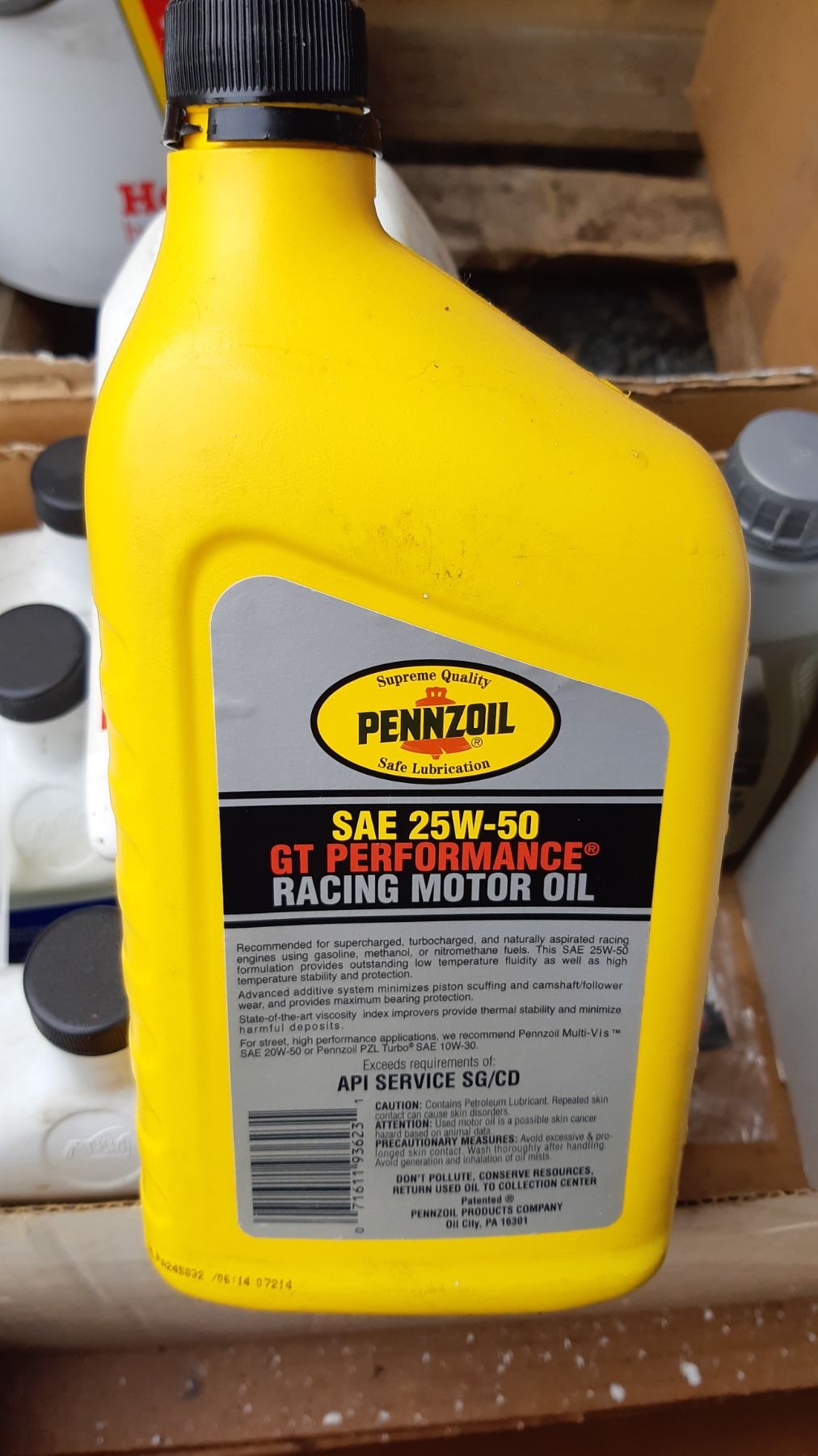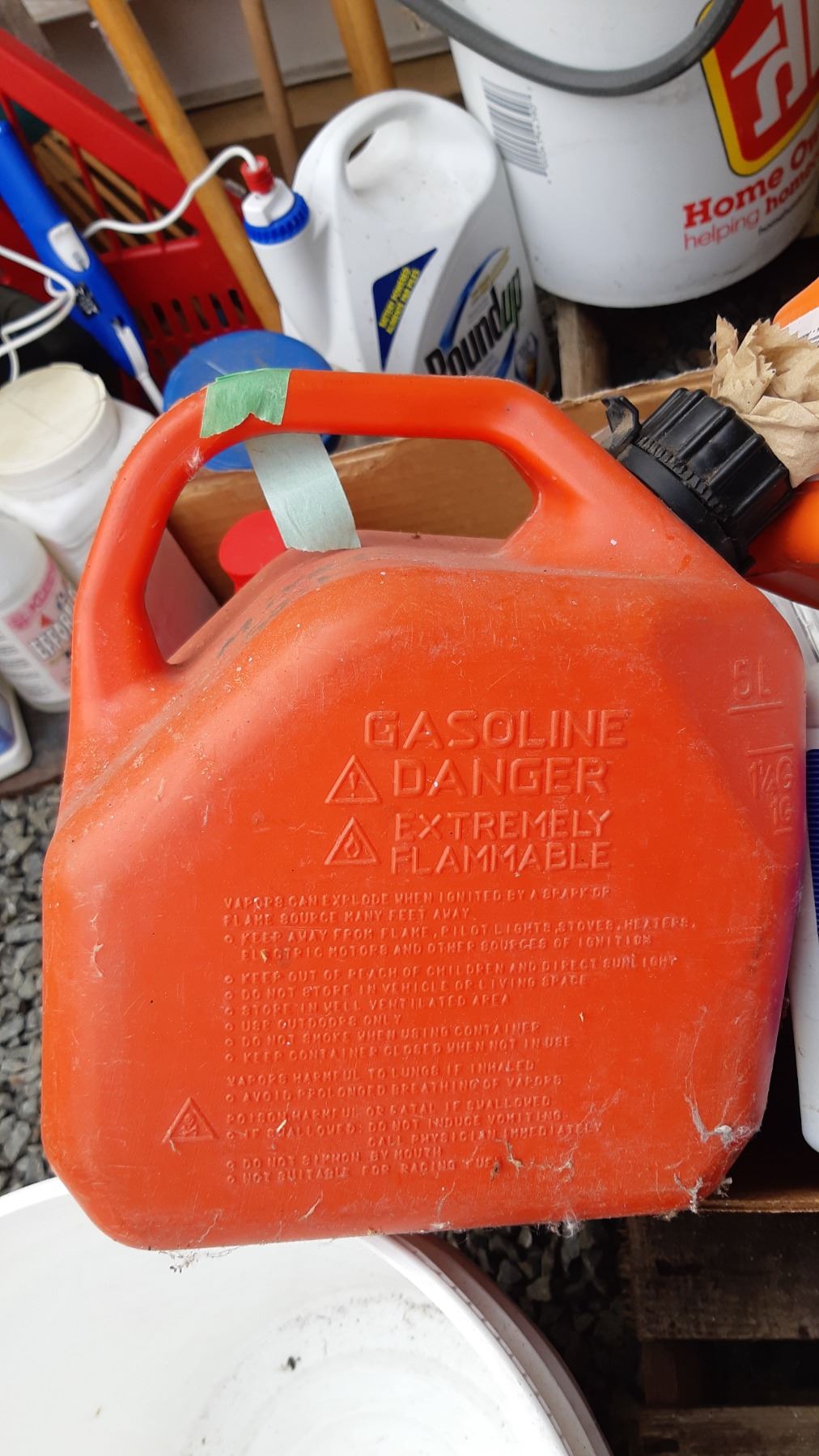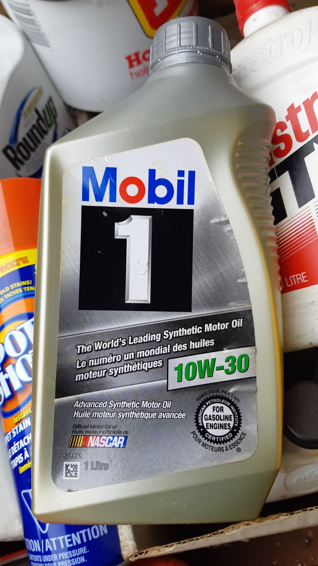 Box of car oil most are full, gas can, hand cleaner, cone for pouring oil. Pick up 9-10
