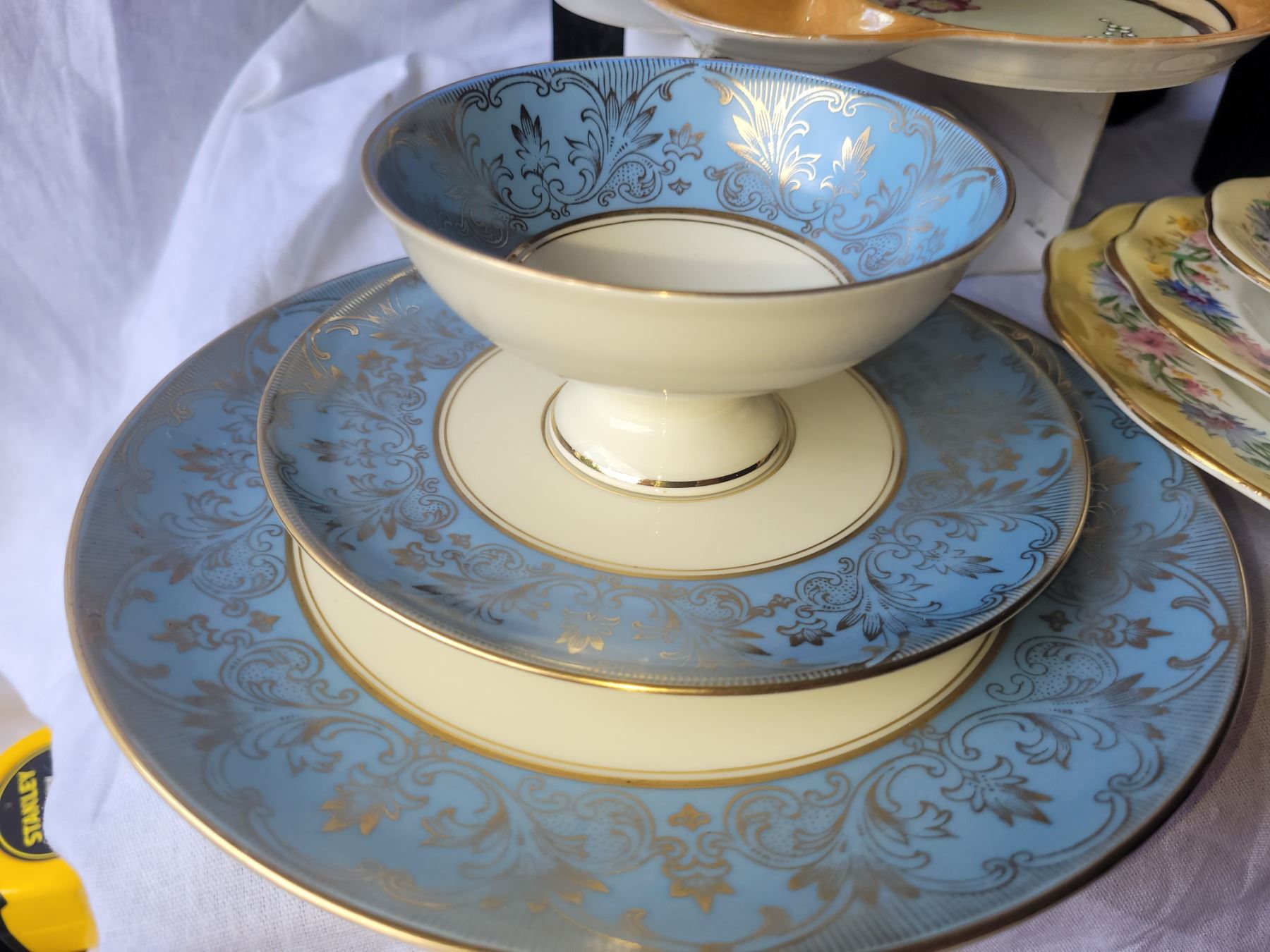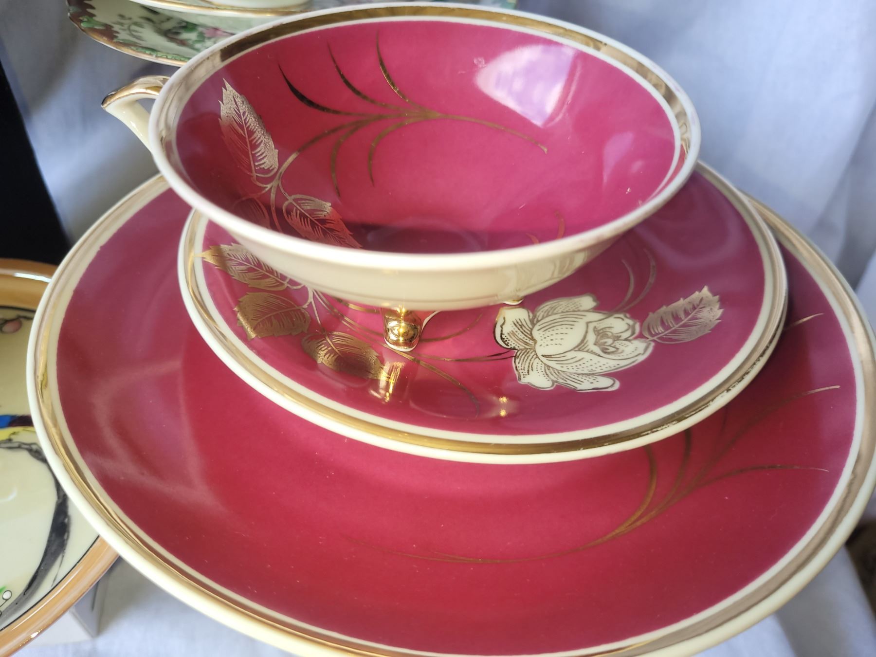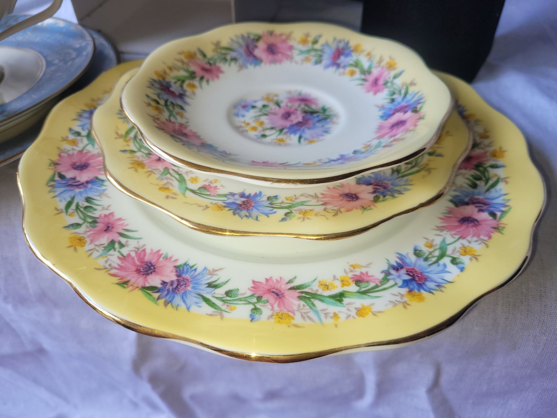 18 pieces in this bone china teacup/saucer and plate dishes. Picku at 9 am