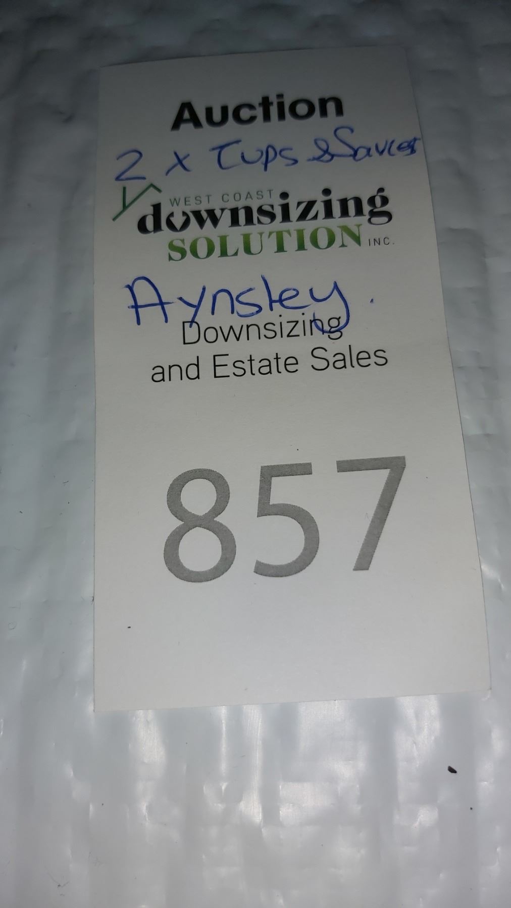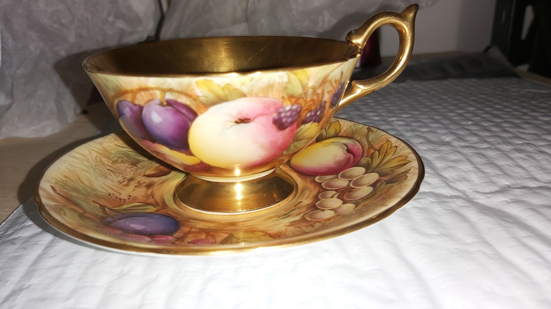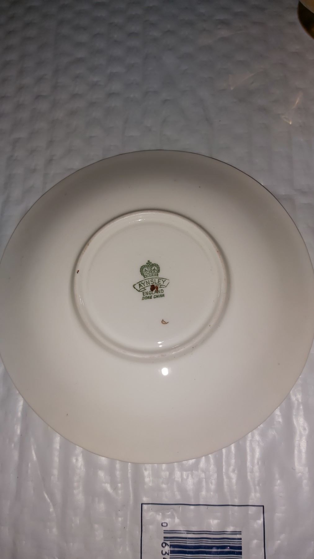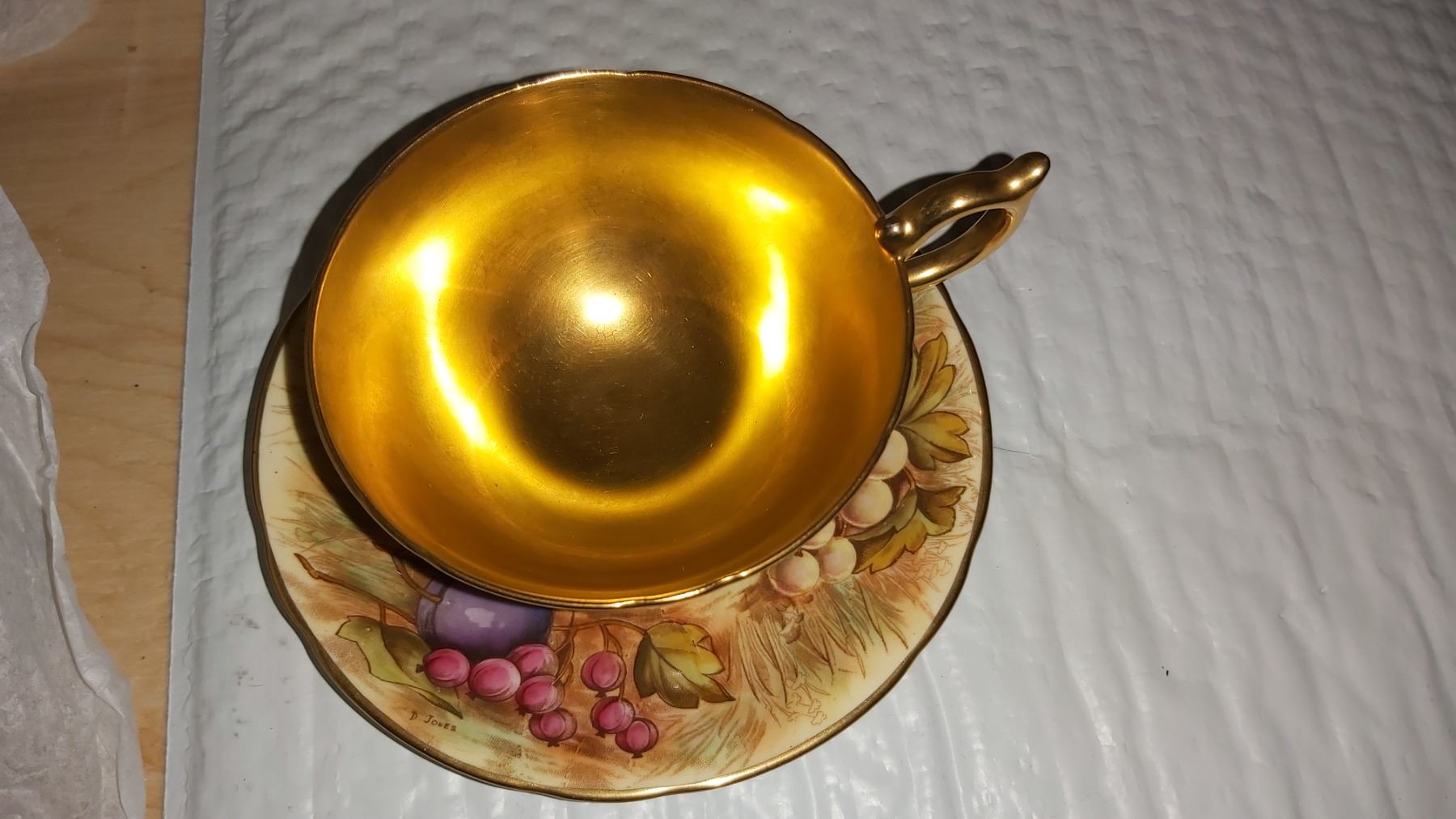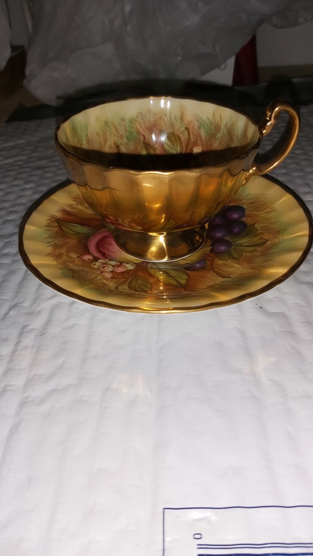 2 Aynsley tea cups & saucers in gold finish. Bring packing material and pickup at 9 am