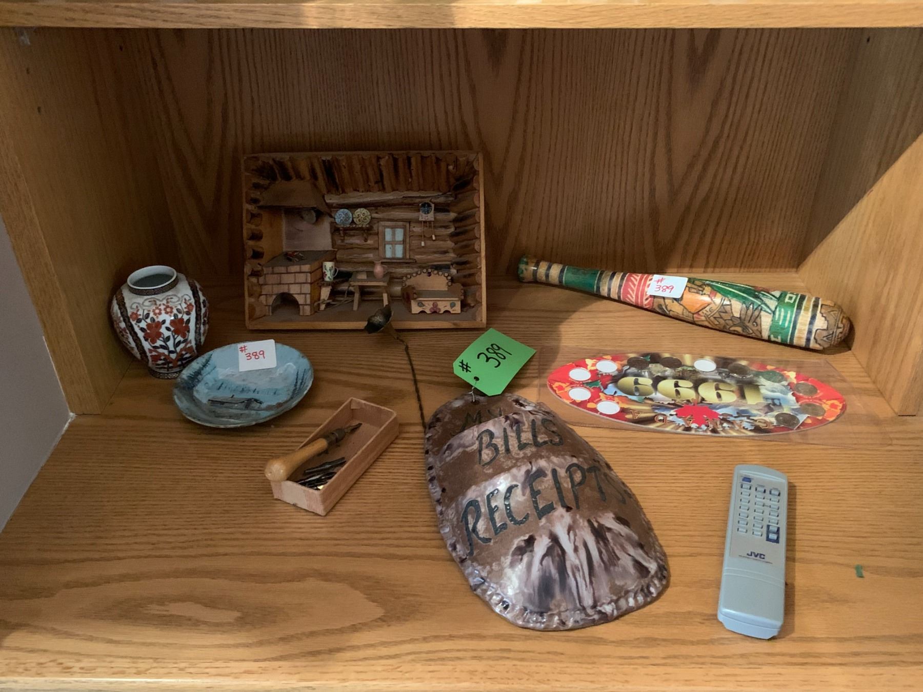 Aztec carved wooden club, 1999 quarter coin collection (incomplete), vintage quill pens & tips & misc. décor