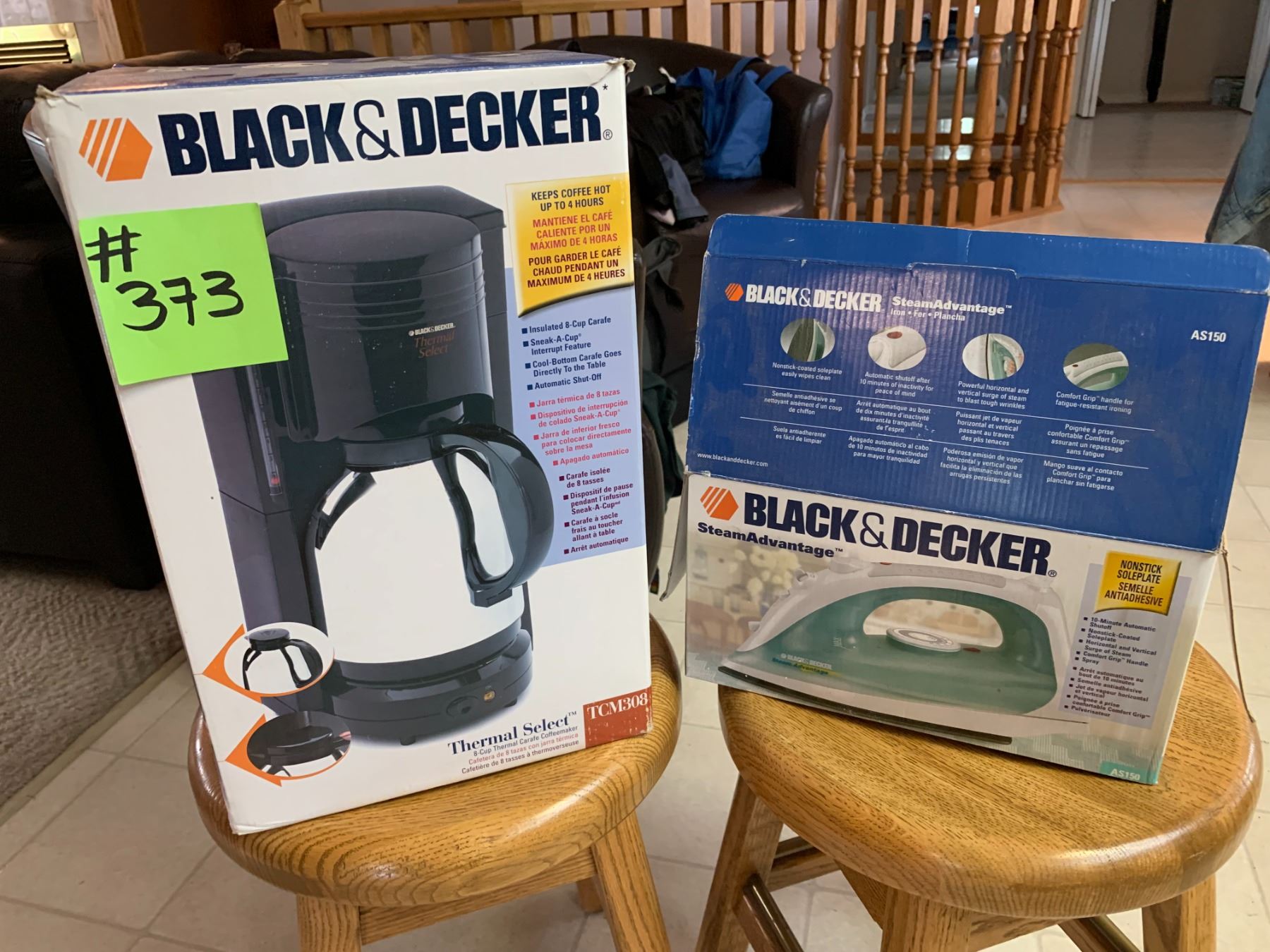 B&D 8-cup thermal carafe coffeemaker (like new), B&D Steam Advantage iron (like new)