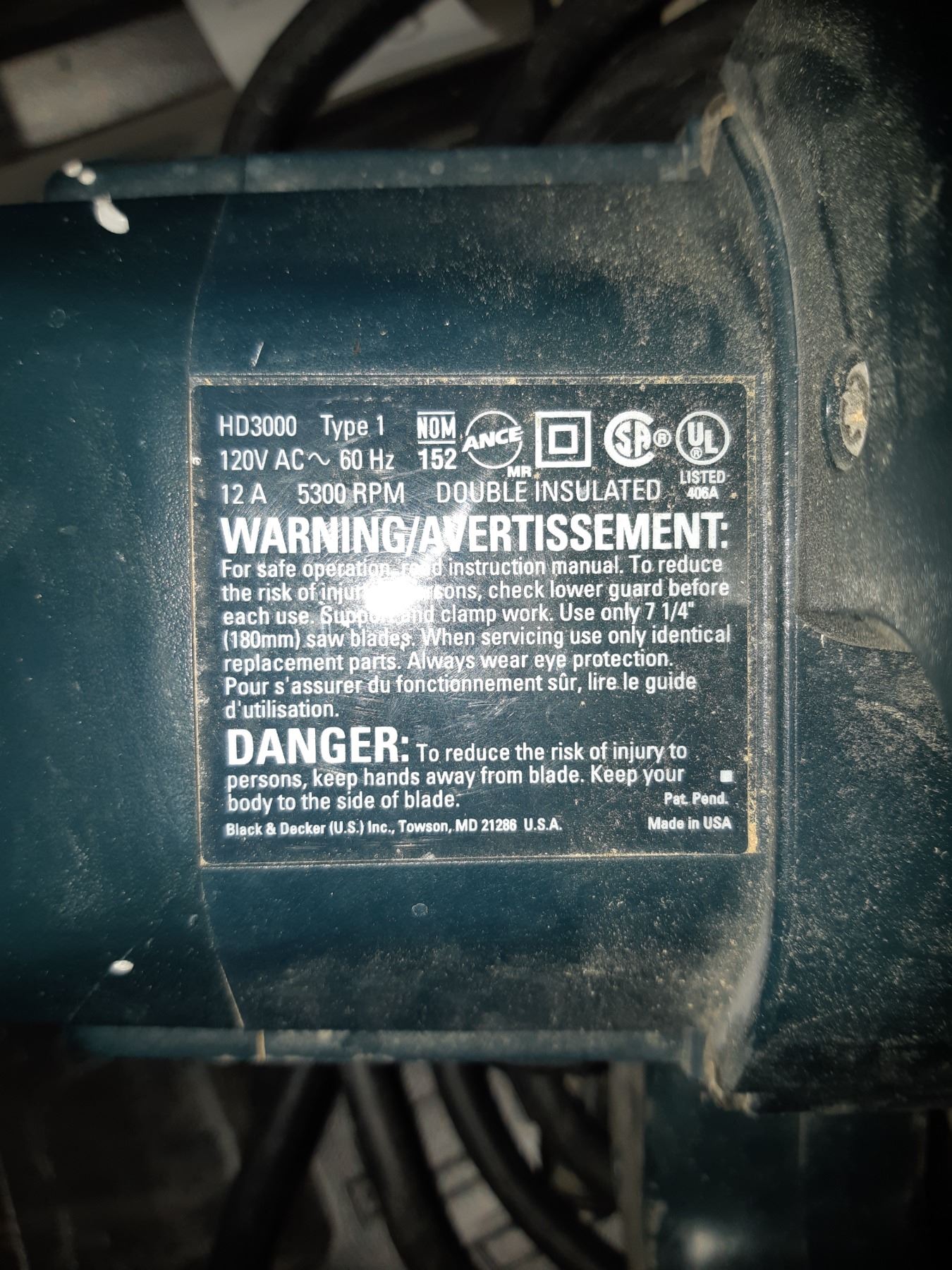 B&D circular saw HD3000 untested Pickup at 11 am
