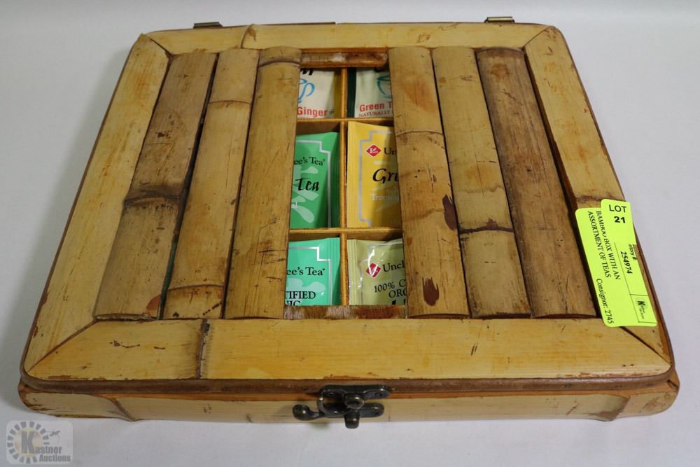 BAMBOO BOX WITH AN ASSORTMENT OF TEAS