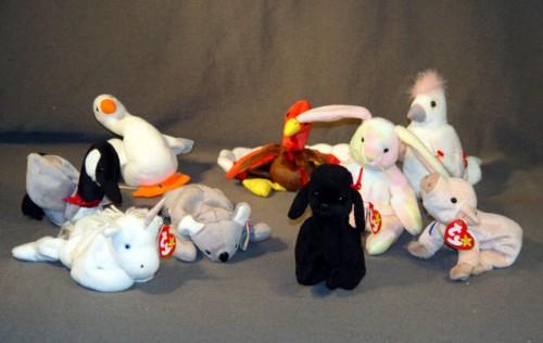 BEANIE BABIES: GOBBLES, GRACIE, HIPPIE, KNUCKLES, KUKU, GIGI, LOOSY, MEL & MISTIC -- 9X THE MONEY