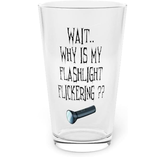 BEER GLASS PINT 16OZ WAIT WHY IS MY FLASHLIGHT FLICKERING PARANORMAL HUNTING GAG MEN WOMEN 16OZ