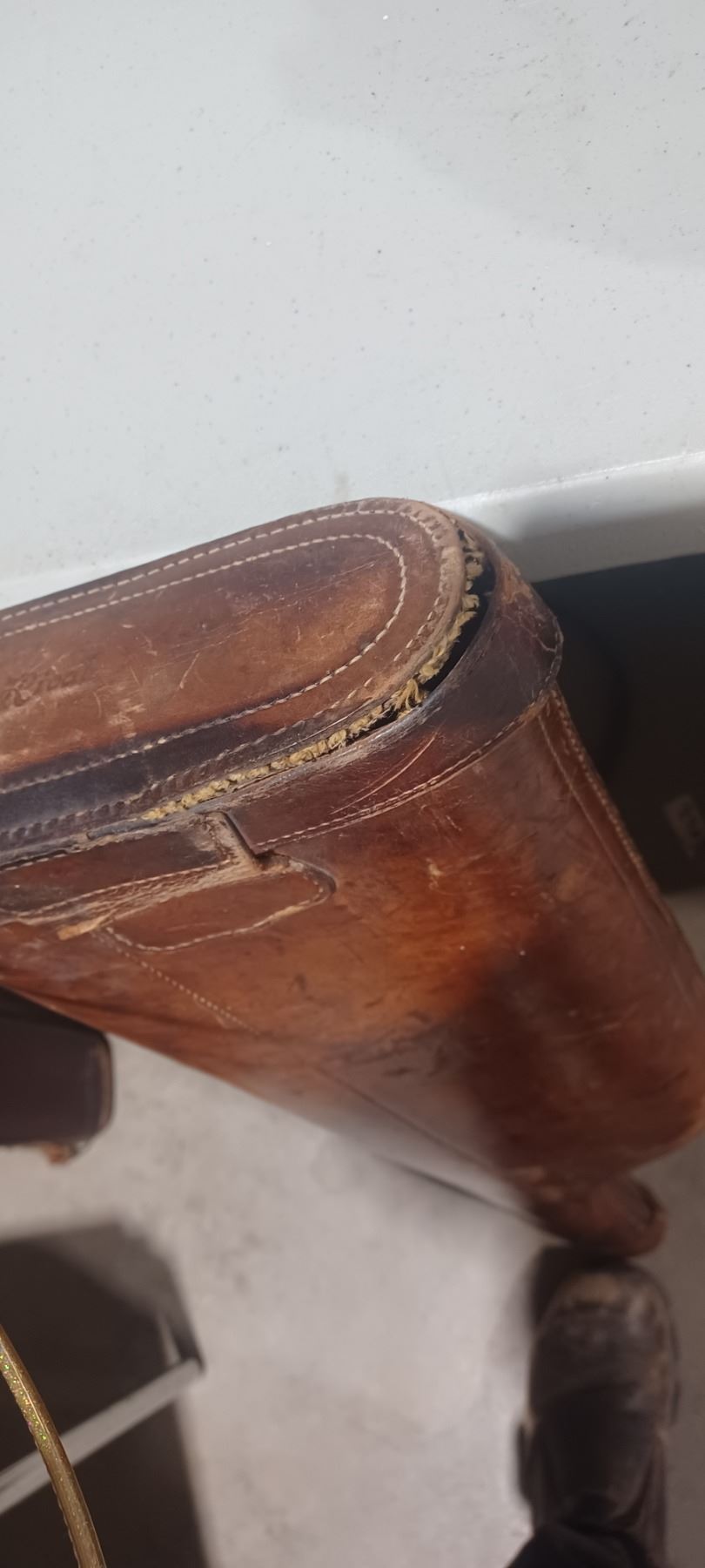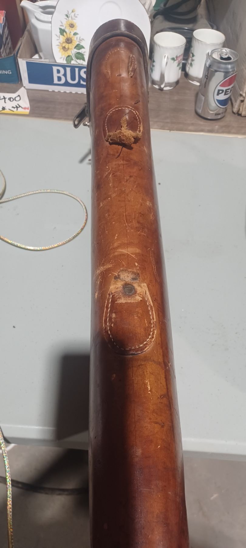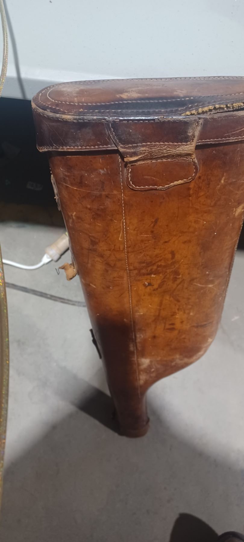 BEIGE LEATHER HARD SHOTGUN CASE ( LEG OF MUTTON)