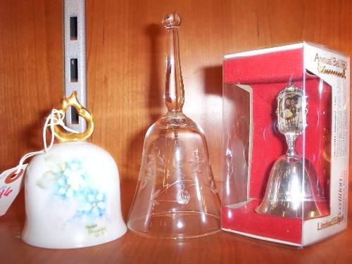 3 BELLS, 1 CRYSTAL, 1 HANDPAINTED CHINA, 1 HUMMEL