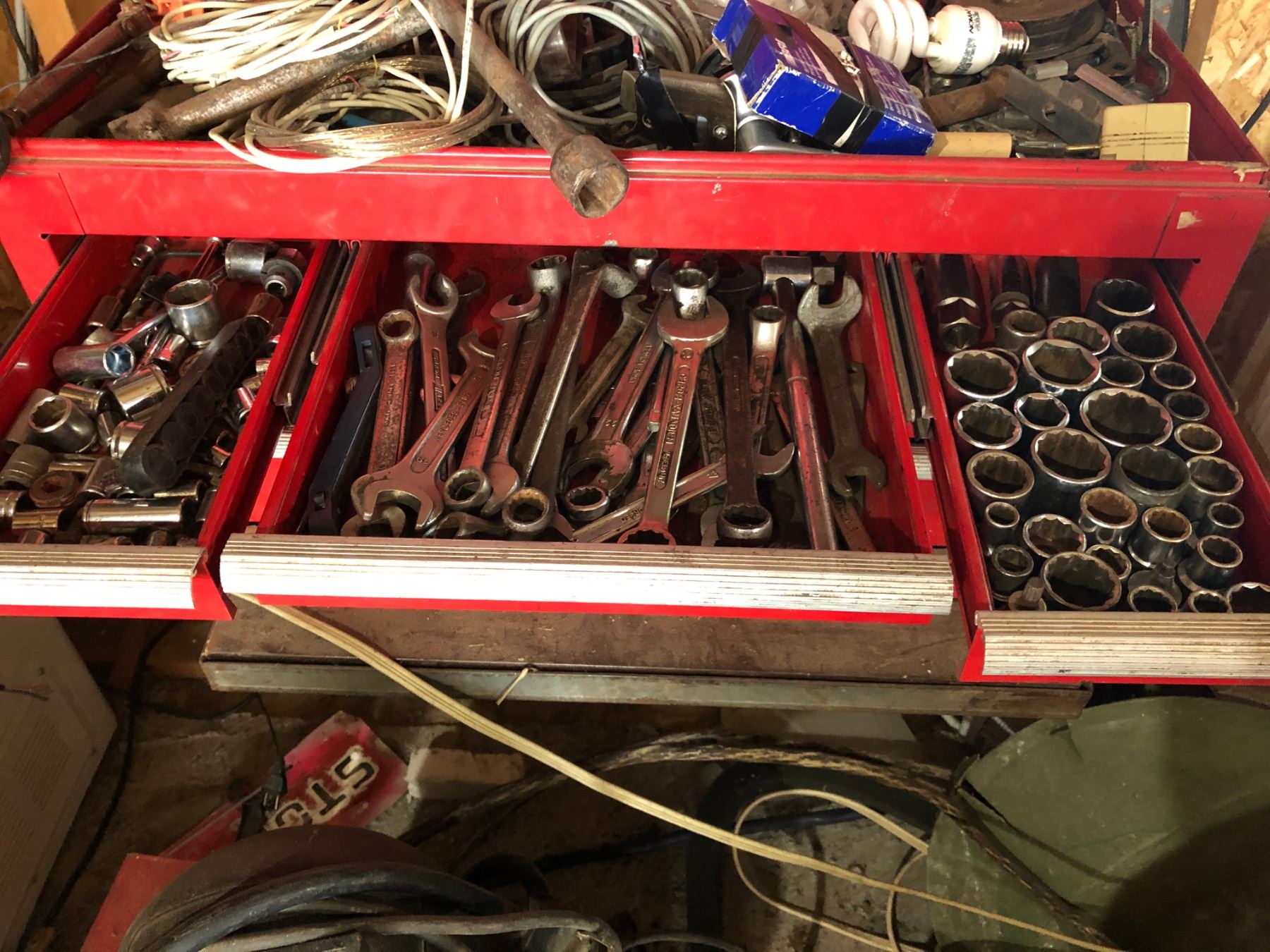 INCLUDES: LARGE QTY OF HAND TOOLS, WRENCHES, SOCKETS, ETC.