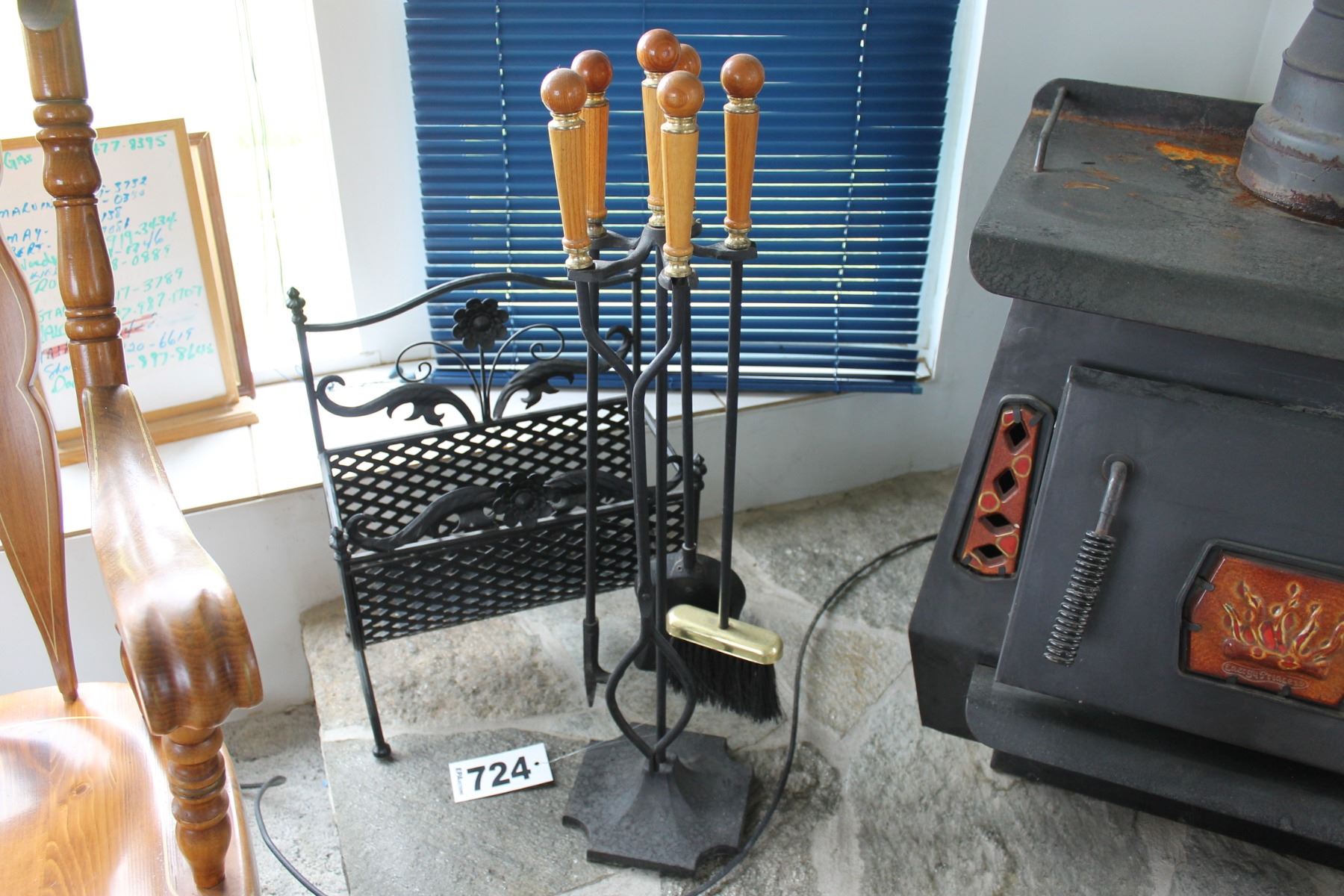 BLACK LOG HOLDER & FIREPLACE TOOLS SET
