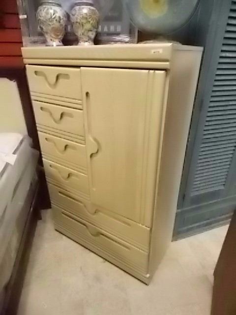 BLOND OAK HIGH BOY DRESSER - 6 DRAWER - 2 DOOR
