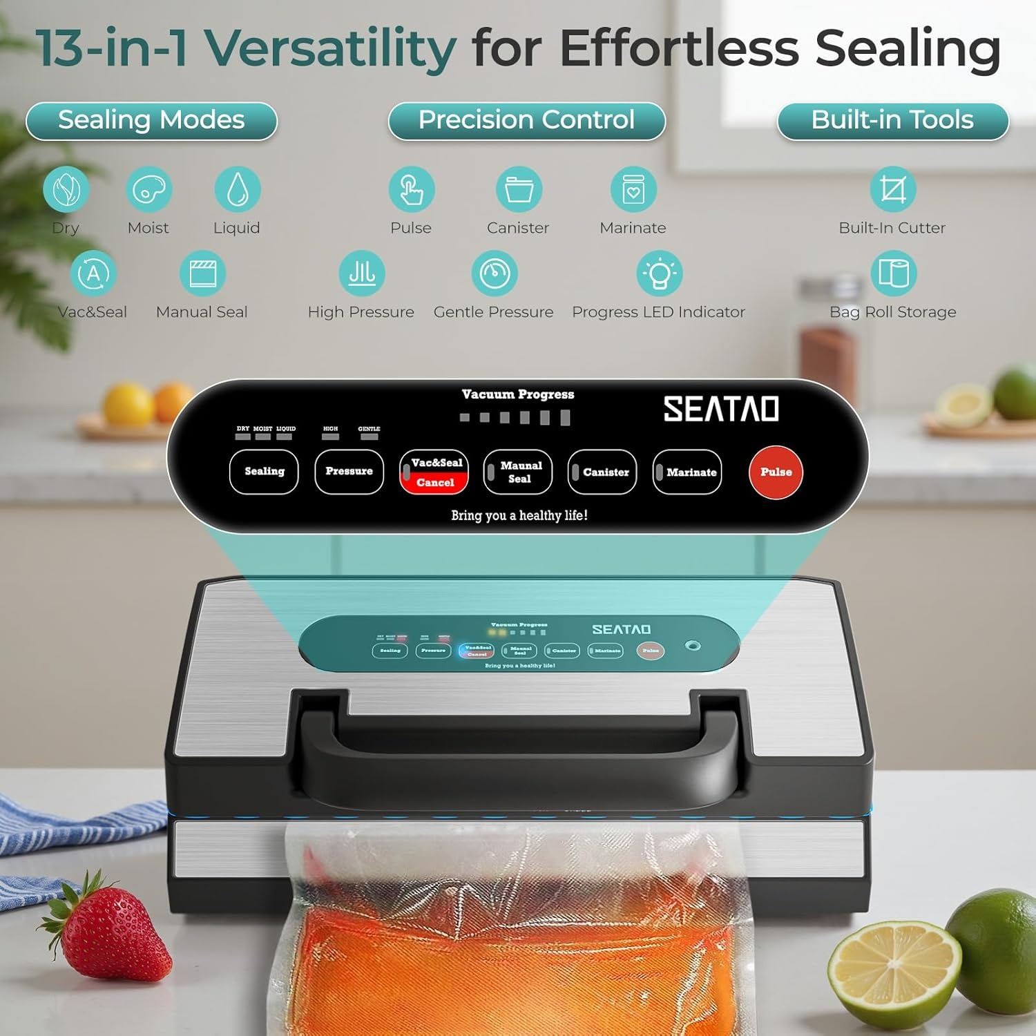 BNIB SEATAO VH5188 Automatic Vacuum Sealer Machine, 90kPa Multifunction Commercial Vacuum Food Sealer Retail $223