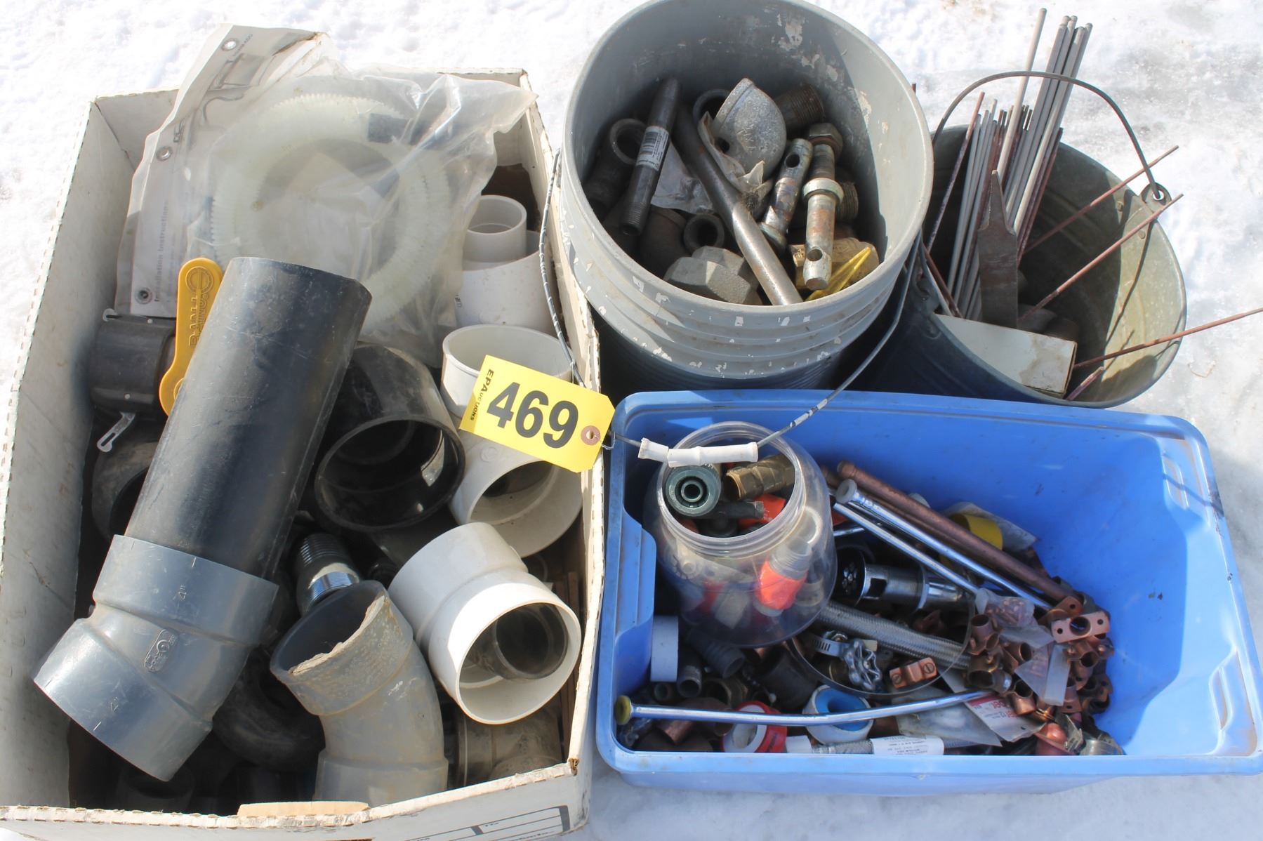 BOX & 3 PAILS WITH FITTINGS AND TUBING