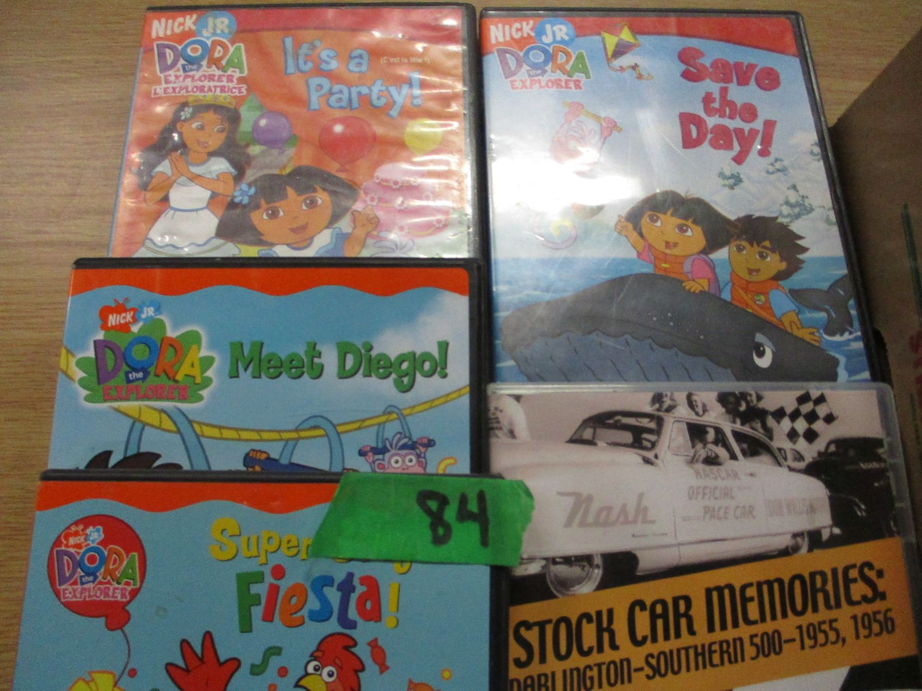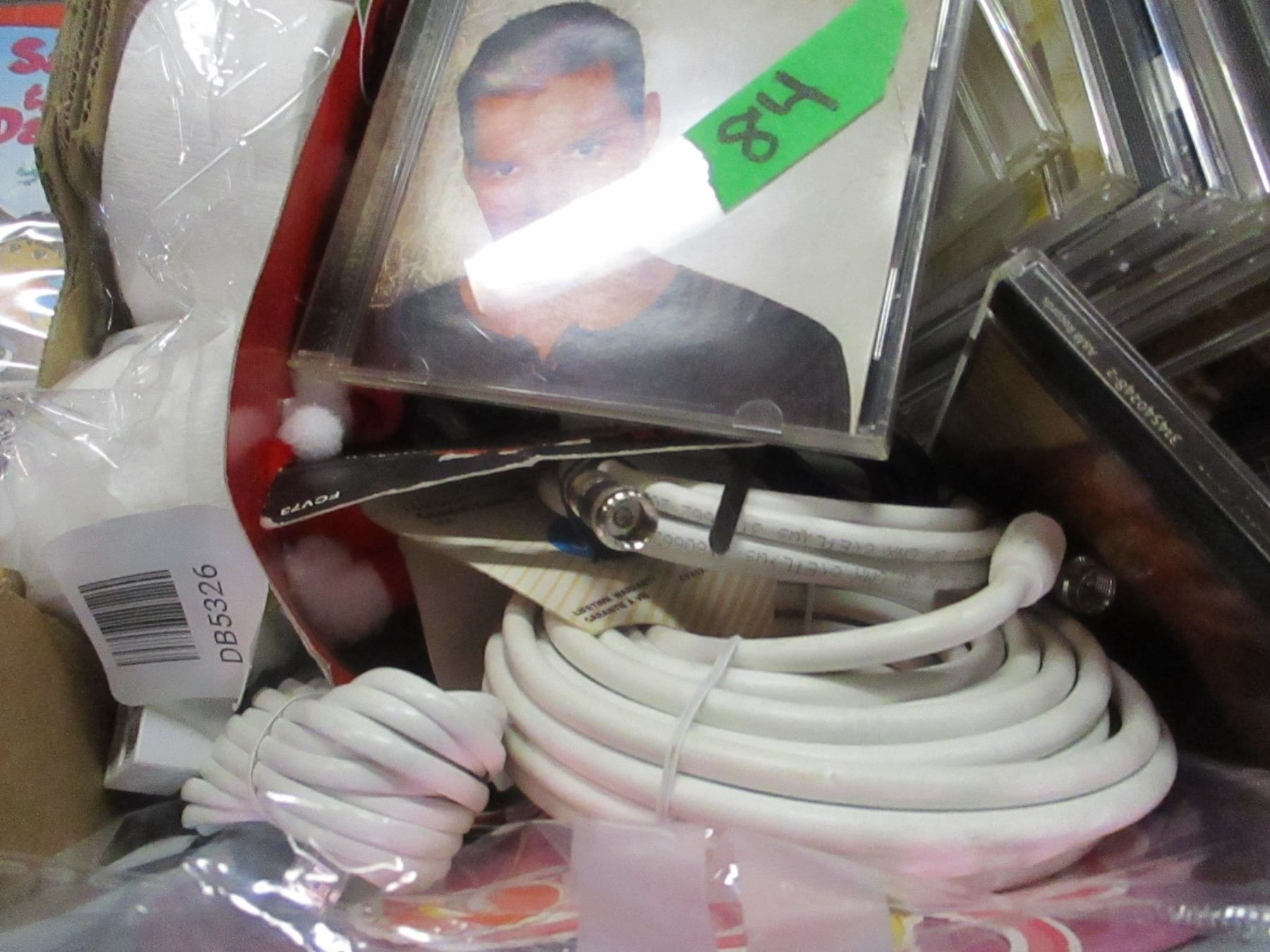 BOX C/W PHONE CORDS, CABLE, DVD'S, CD'S, ETC