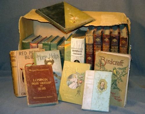 BOX LOT OF BOOKS INCL 1908 "THE WHITE HOUSE COOKBOOK"