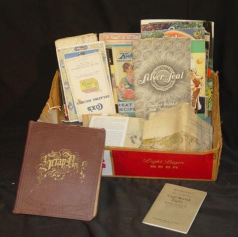 BOX LOT OLD RECIPE PAMPHLETS, HUDSON RIVER MAP, ETC.