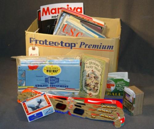 BOX LOT WITH CAMERA MAGAZINES, MINI AIRPLANES, ETC.