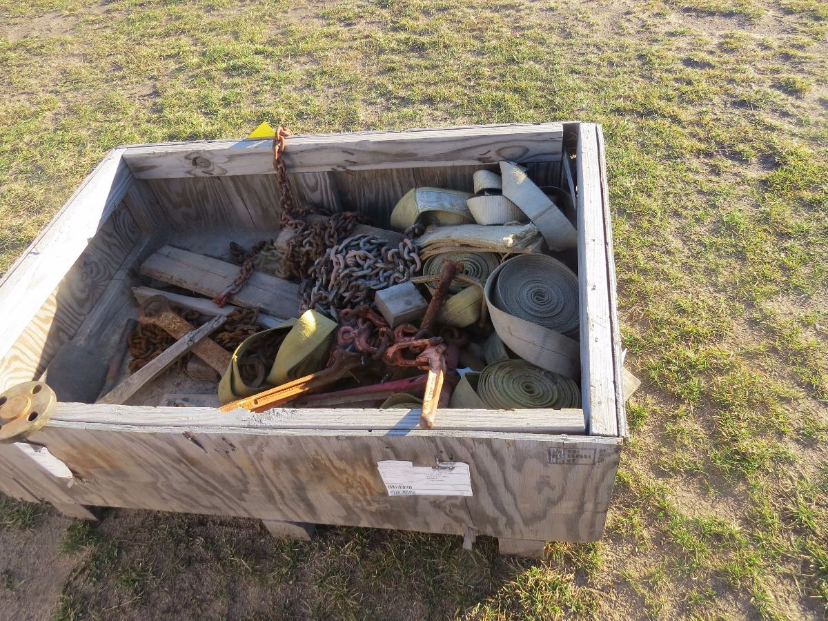 BOX OF CHAINS, BOOMERS, STRAPS