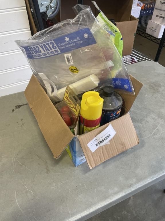 BOX OF NEW ITEMS, MOSTLY HARDWARE