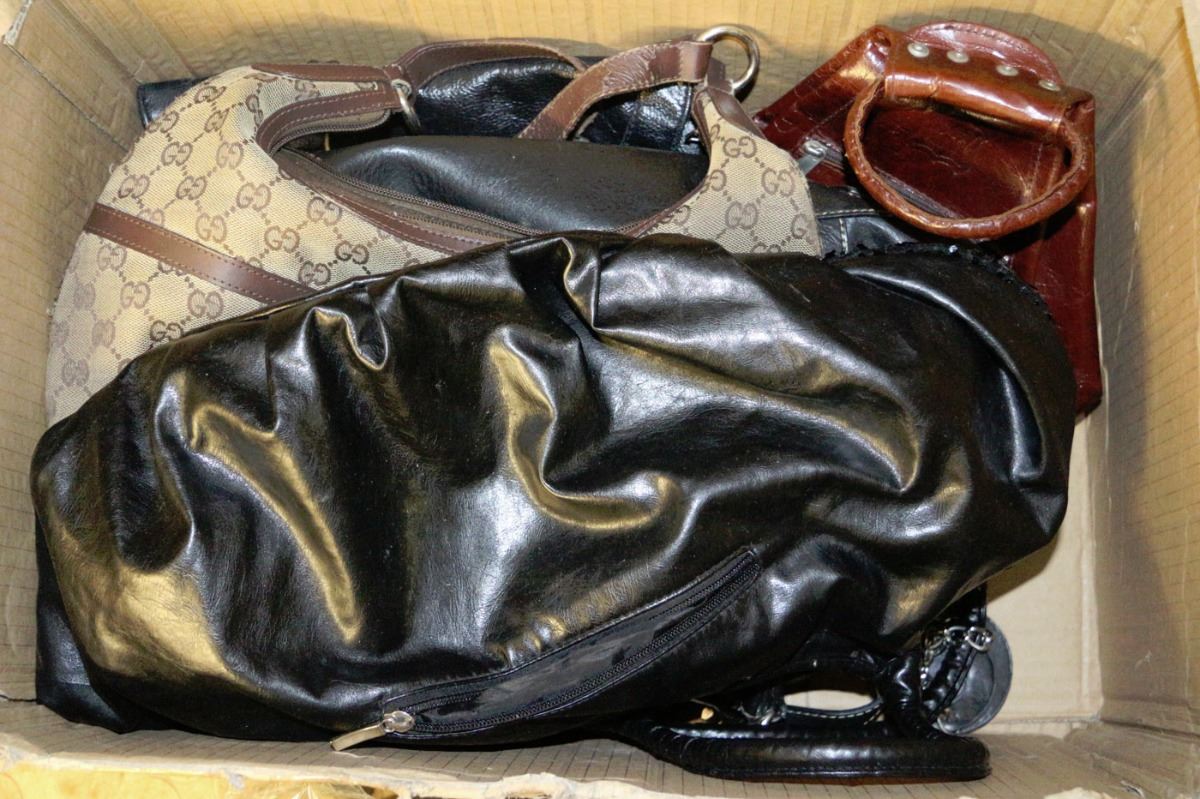 BOX OF PURSES INCL LIZ CLAIBORNE, BLACK SEQUIN,