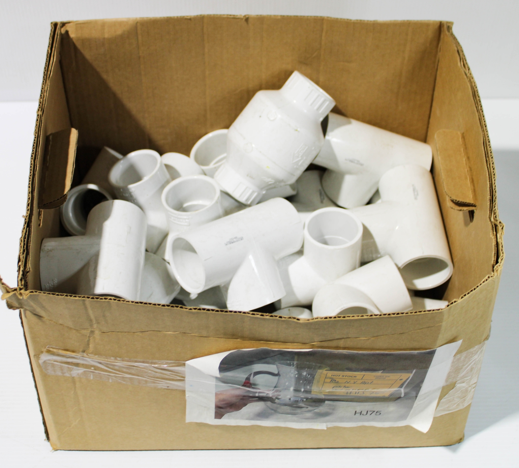 BOX OF PVC PLUMBING FITTINGS