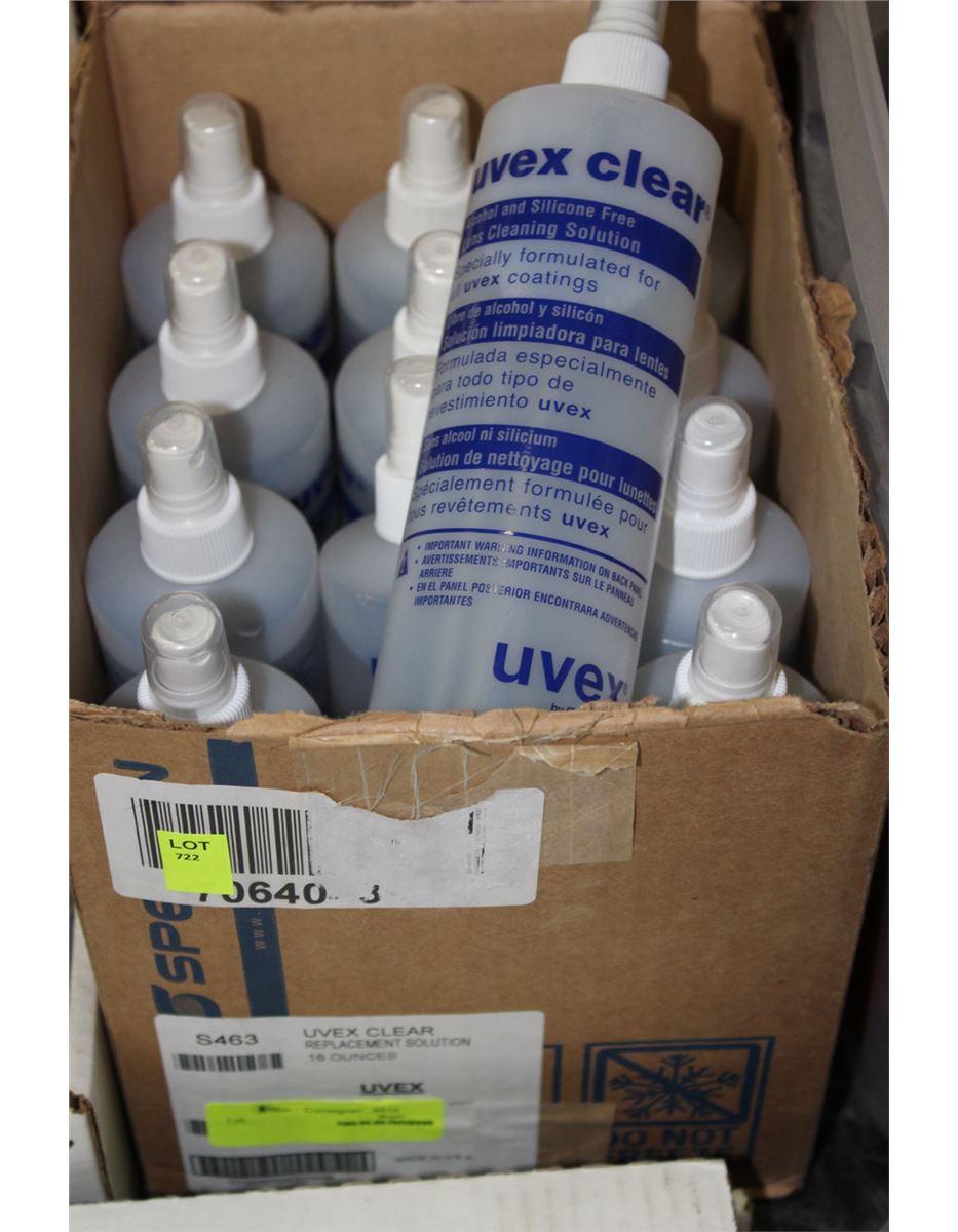 BOX W/ 12 BOTTLES OF UVEX CLEANER